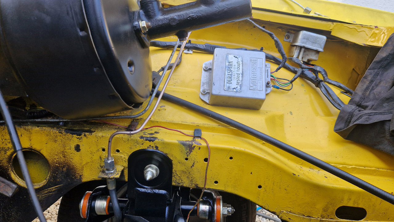 Tu już wszystkie rurki zbiegają się do trójnika, a z trójnika przewód elastyczny prowadzi do mocowania w karoserii.