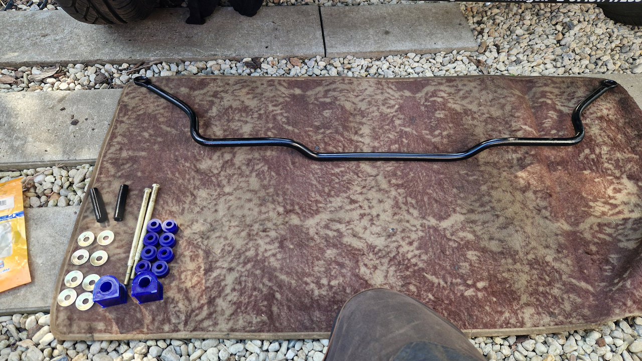 Gumy drążków reakcyjnych też są wymienione na poliuretany. Trochę mi się ich konstrukcja nie podoba, zobaczymy, jak się będą sprawować.