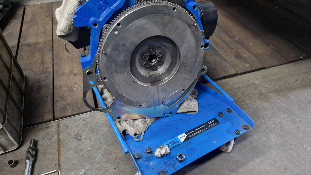 Teraz skrzynia bez problemu usiadła na miejsce i przykręciłem ją do silnika.