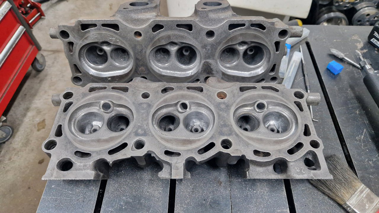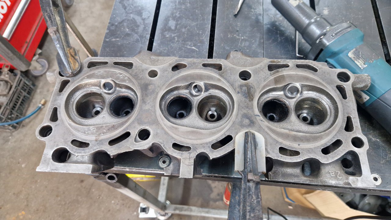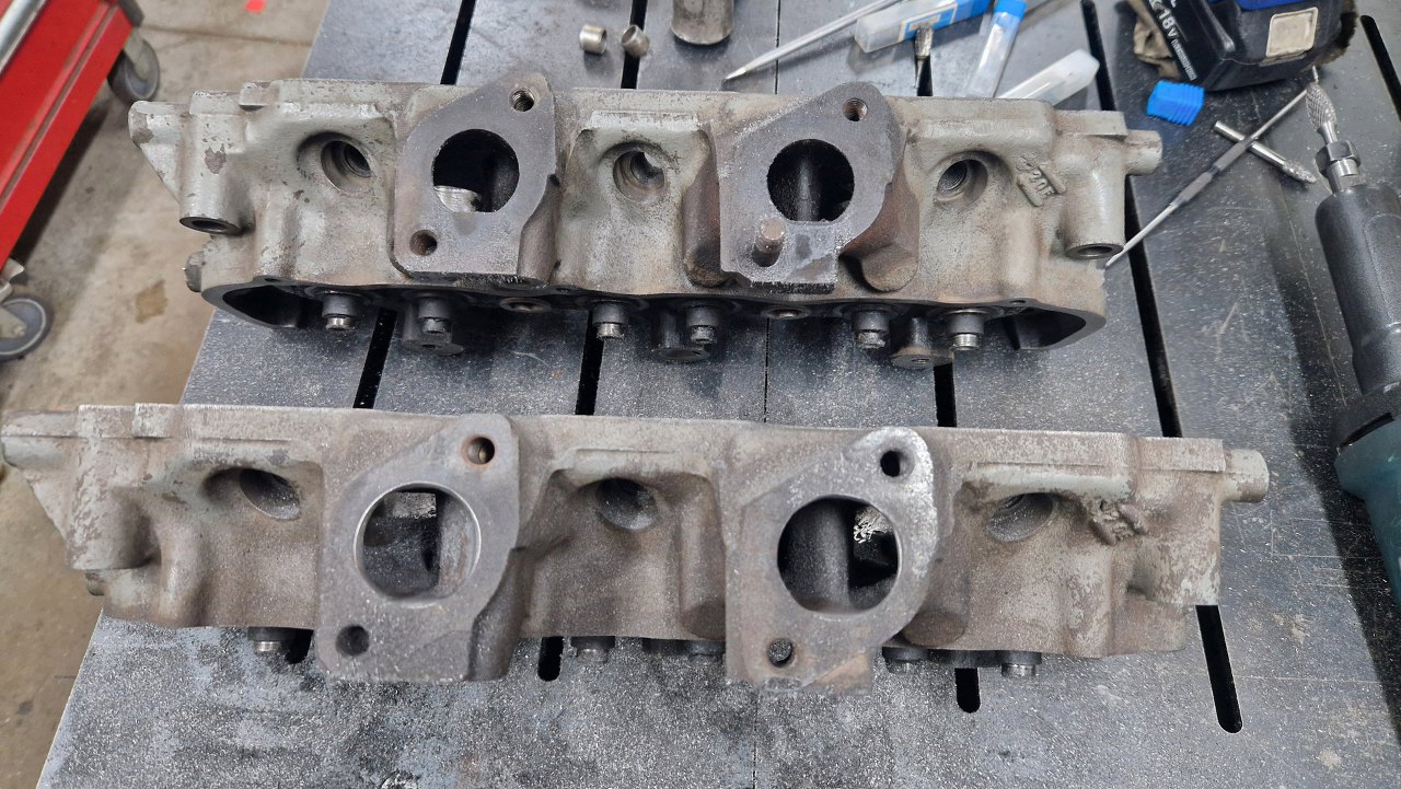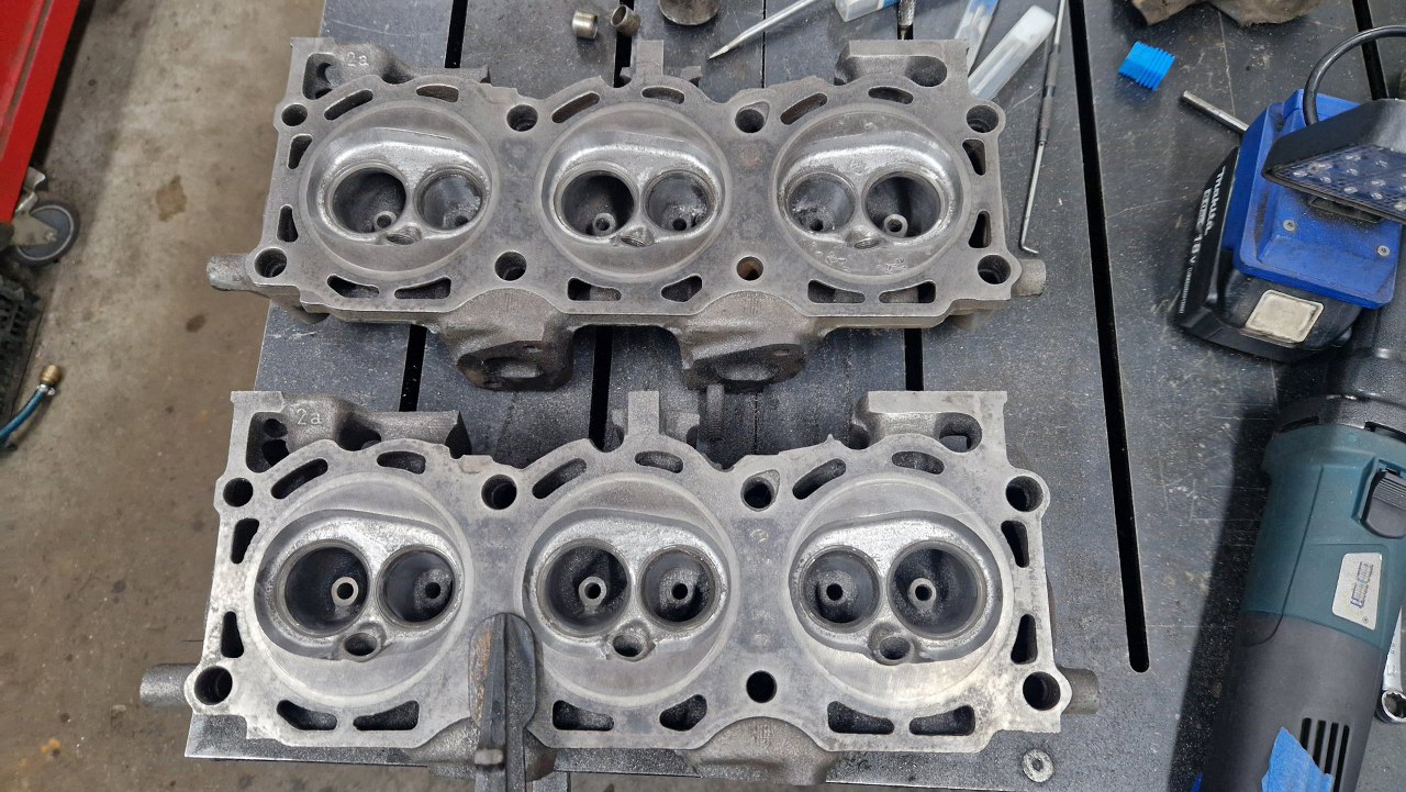Tym razem nie mogłem już dłużej prokrastynować i musiałem się wziąć za przygotowanie głowic. Oprócz zwykłego przeglądu w szlifierni mam tu jeszcze do zrobienia porting i modyfikację komór spalania. Mocy przybywaj! :).
