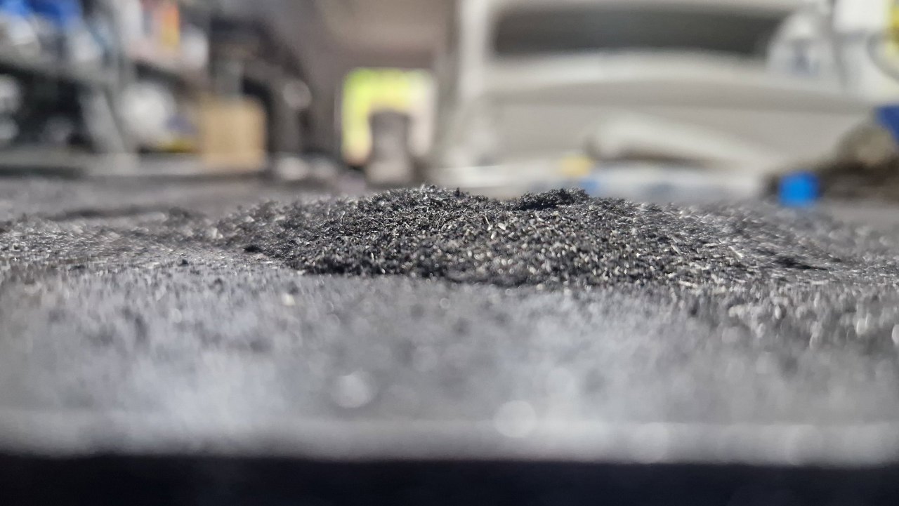 Po skończonej pracy mam cały warsztat zasłany opiłkami żeliwa.