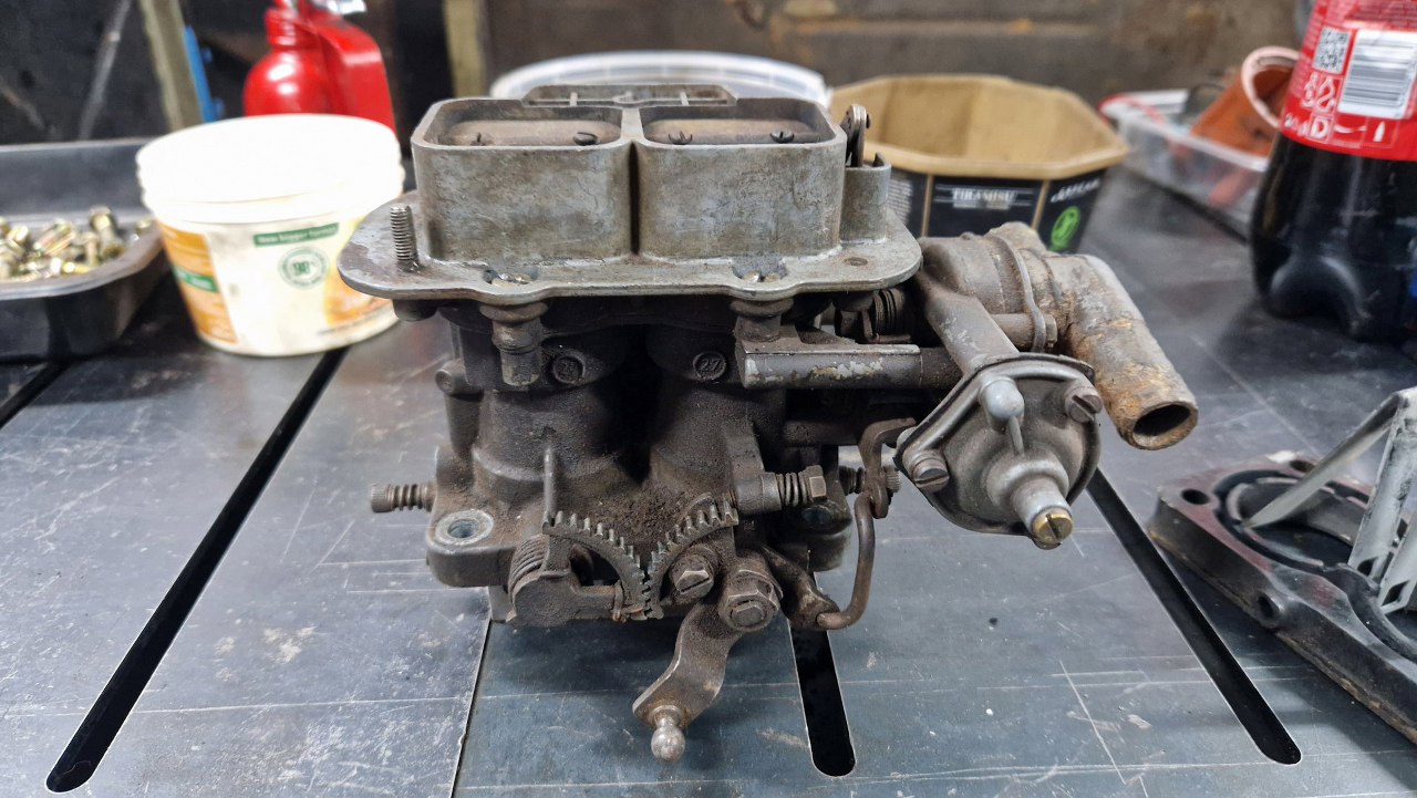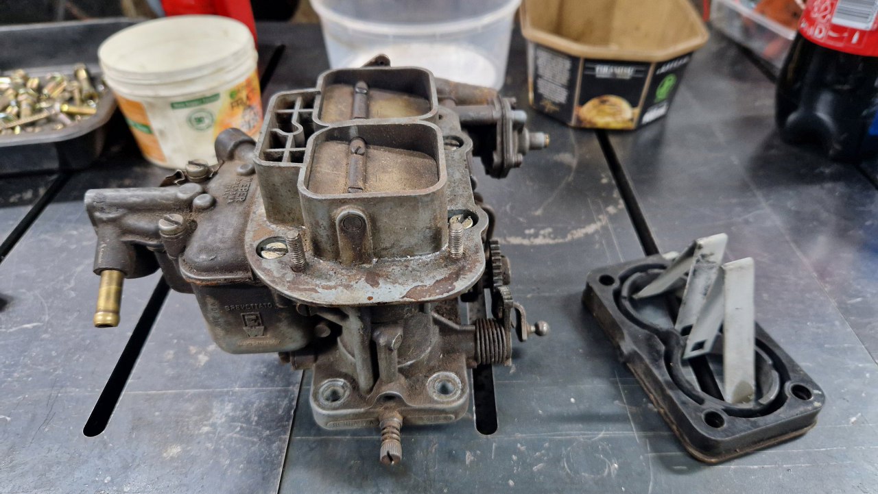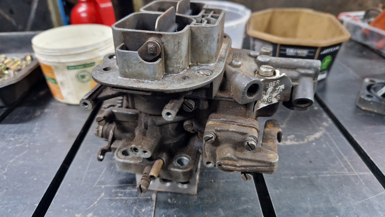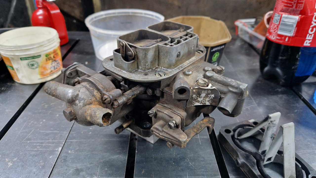 Kolejny projekt w garażu, Ford Capri 3.0. Projekt korespondencyjny :). Nie pierwszy zresztą. Dostałem kilka kawałków samochodu do przywrócenia ich do stanu używalności. Zacznijmy od gaźnika. Jest to Weber 38/38 DGAS, stosowany w silniku 3.0 V6. Już na pierwszy rzut oka widać w podstawce po prawej ułamany króciec podciśnienia. Na to nic nie poradzę, trzeba będzie kupić nową podstawkę - powinny być jeszcze dostępne.