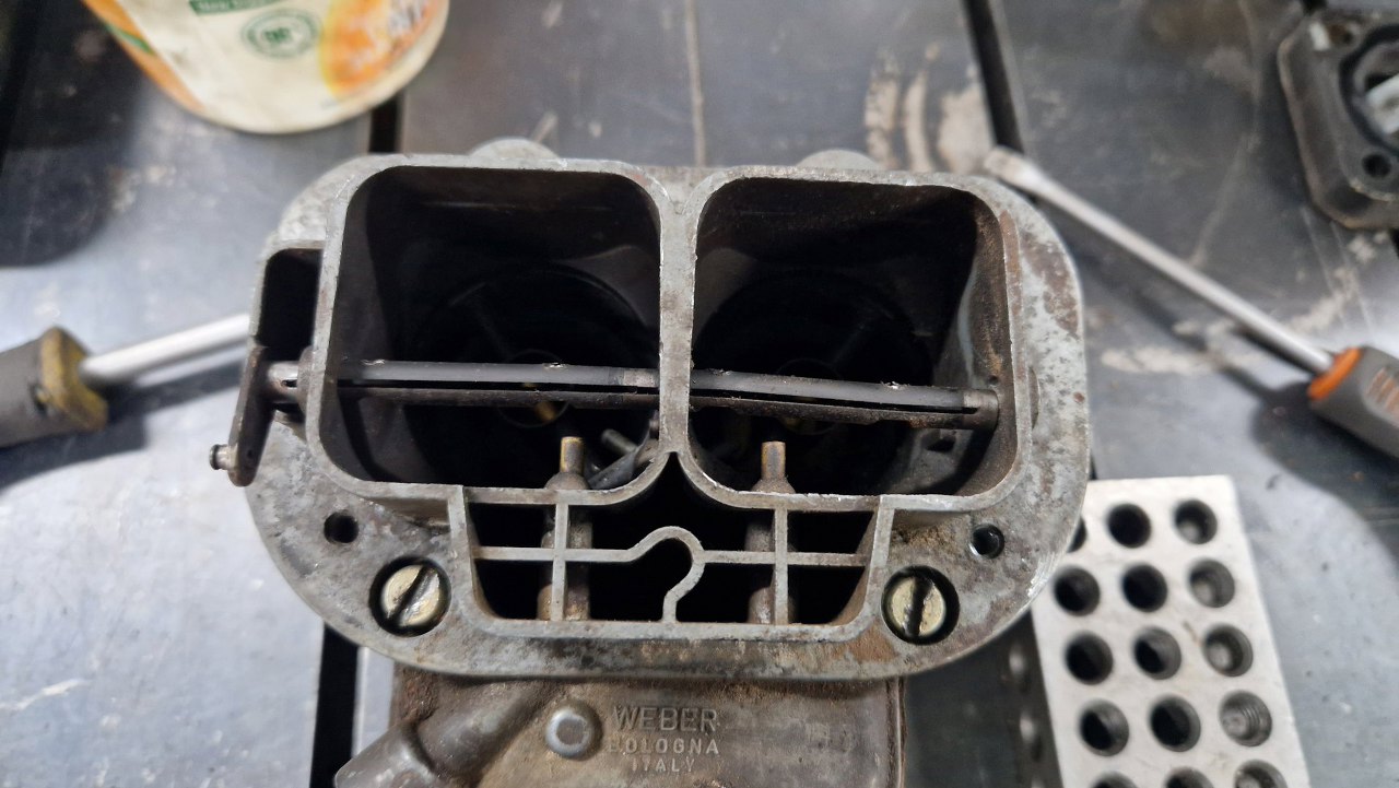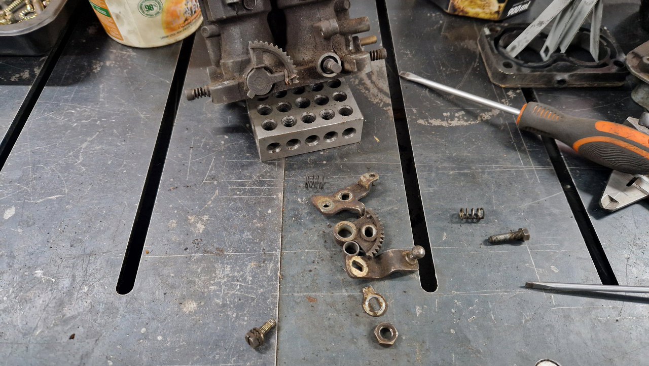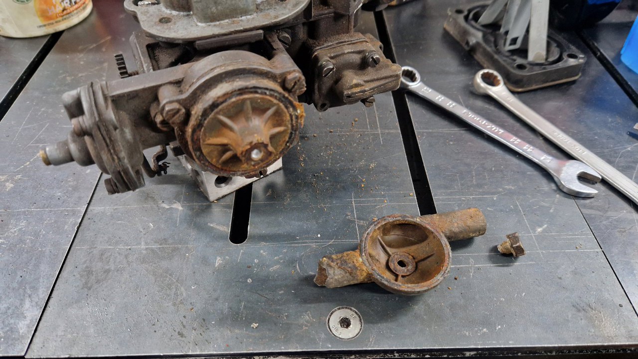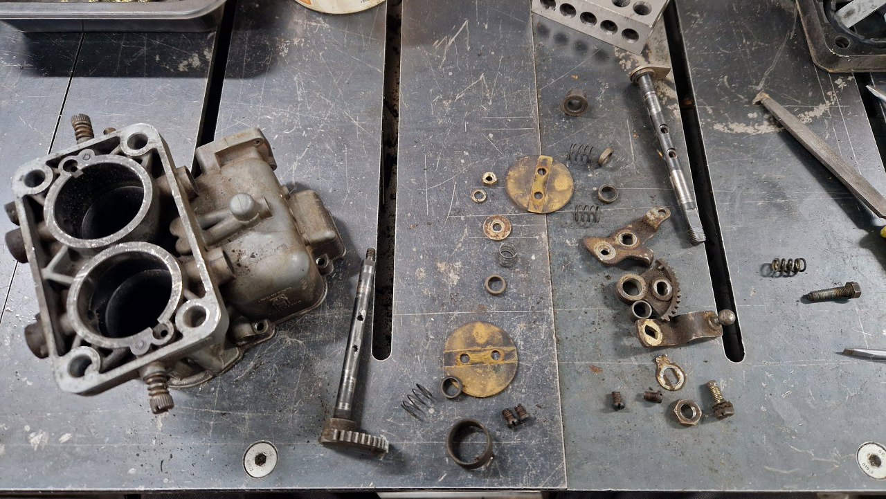 Odkręciłem klapki ssania. No i nie wygląda to dobrze - ośka klapek jest bardzo krzywa i wymaga wymiany.