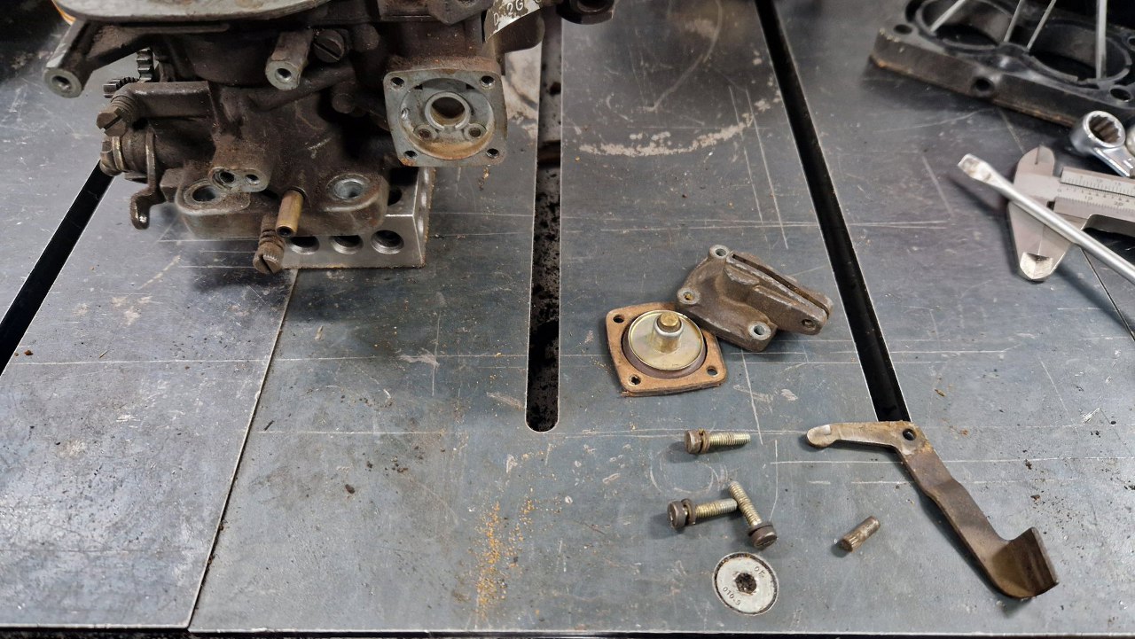 Zajmę się teraz pokrywą gaźnika i wszystkimi częściami do niej przykręconymi.