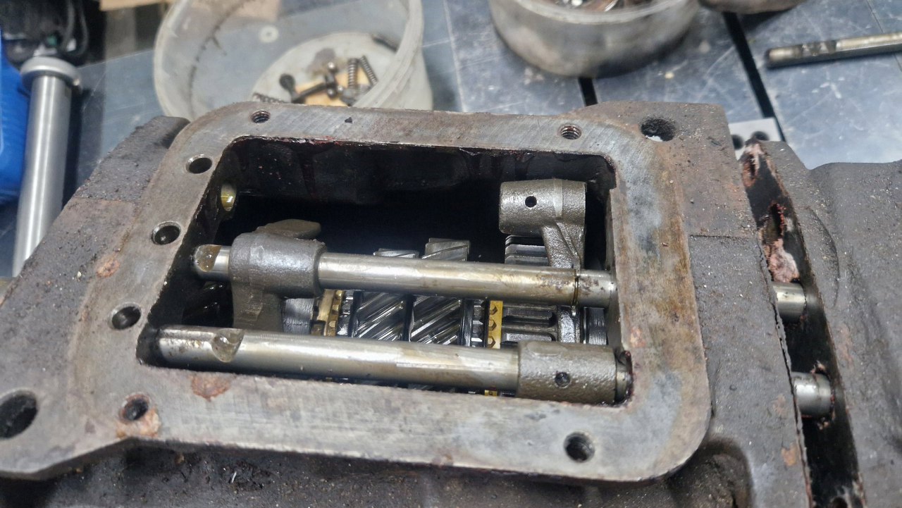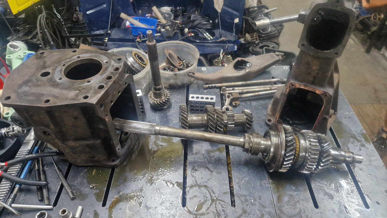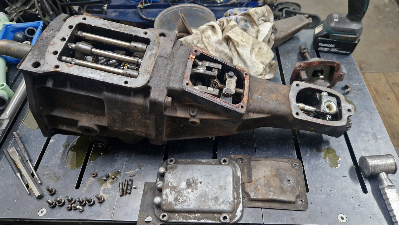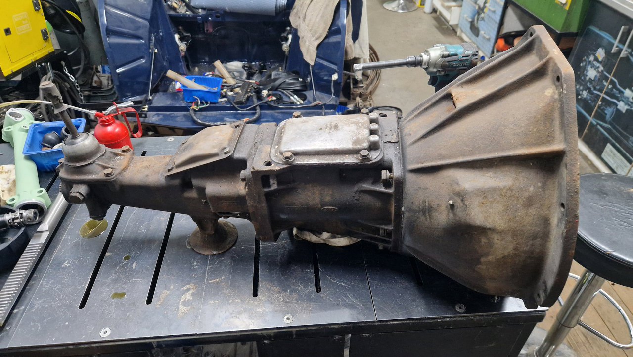 Przy okazji odbioru gaźnika dostałem kolejny pakiet części do ogarnięcia. Wśród nich była skrzynia biegów. Jest to typ E Forda, tzw. wzmacniana czwórka albo iron pig - bo jest ciężka jak cholera.