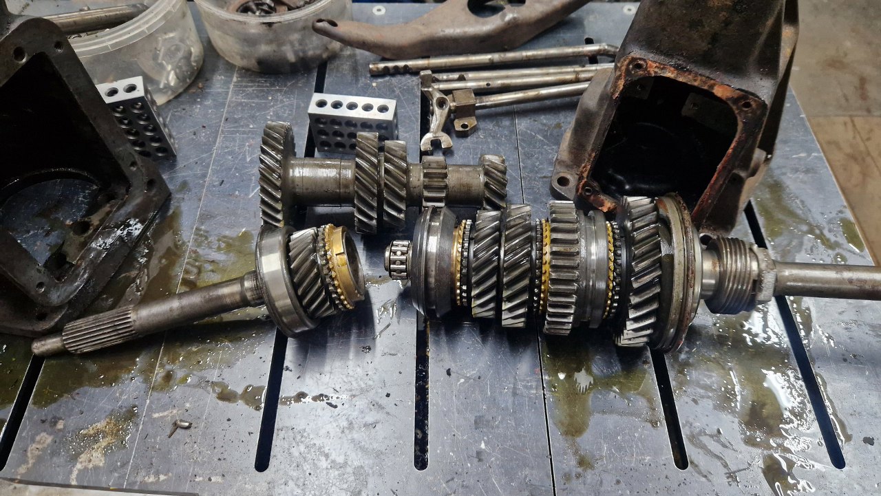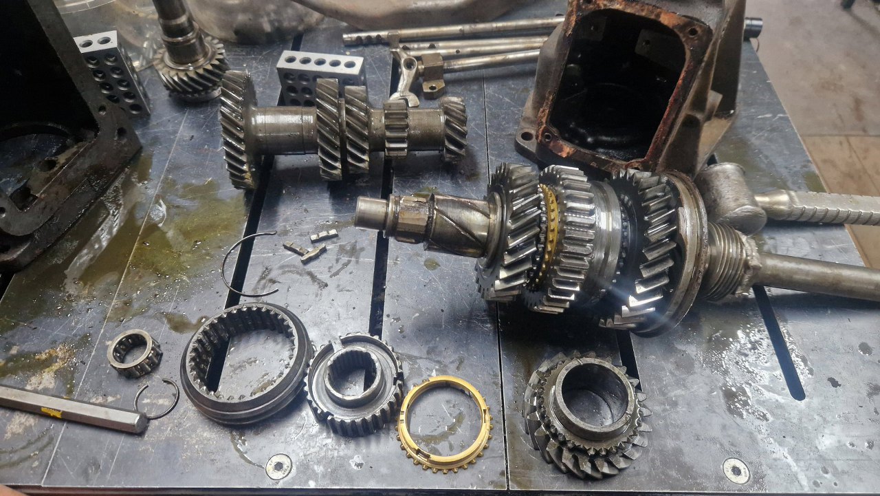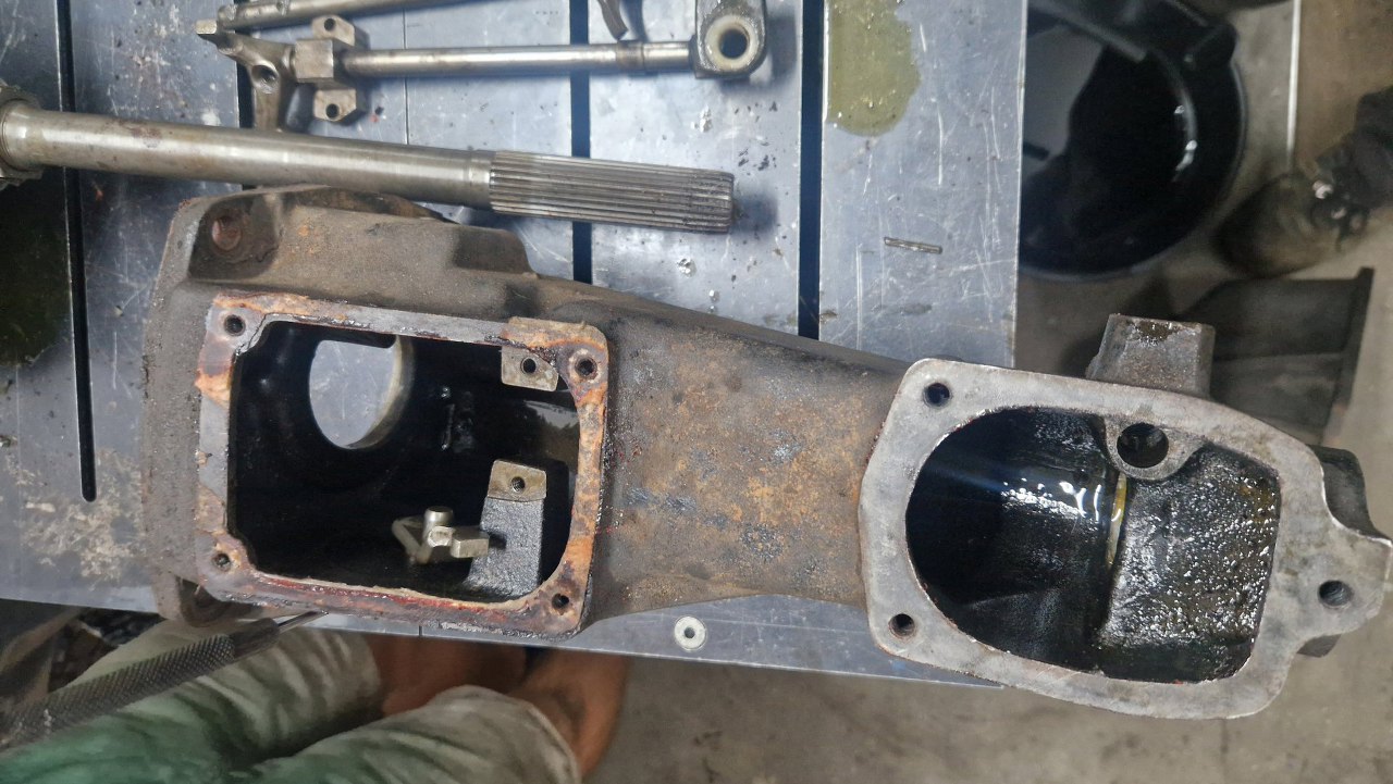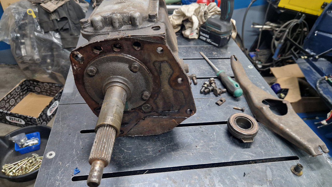 Przy okazji odbioru gaźnika dostałem kolejny pakiet części do ogarnięcia. Wśród nich była skrzynia biegów. Jest to typ E Forda, tzw. wzmacniana czwórka albo iron pig - bo jest ciężka jak cholera.