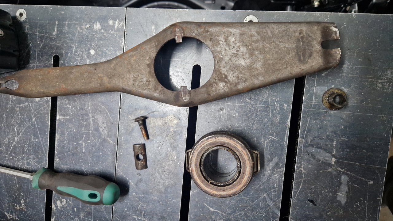 A tu widać z innego kąta ten pin trzymający łapę sprzęgła.