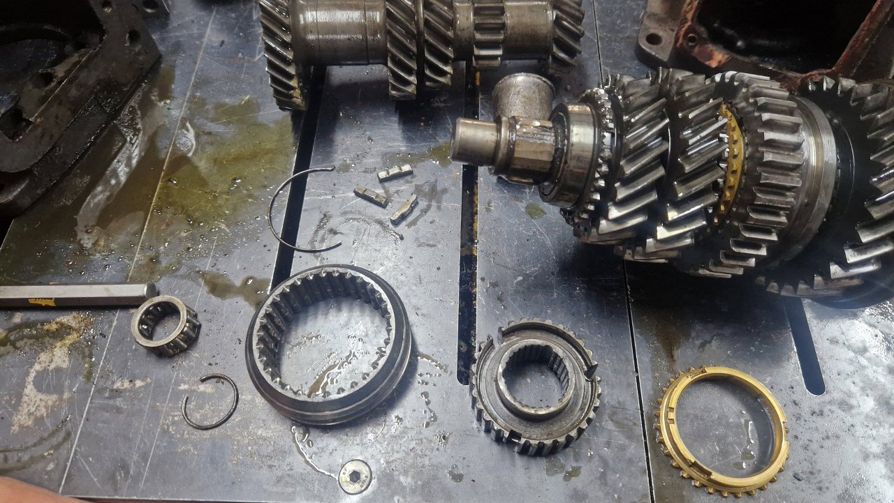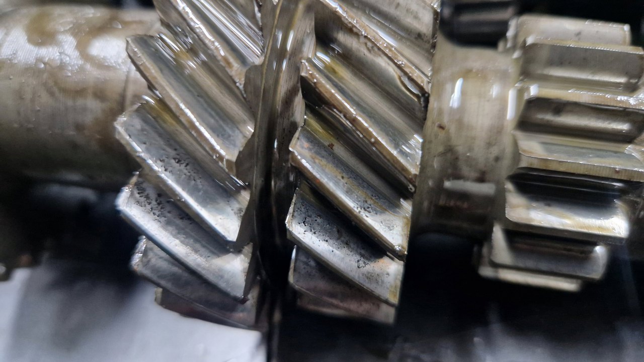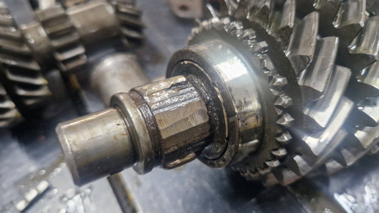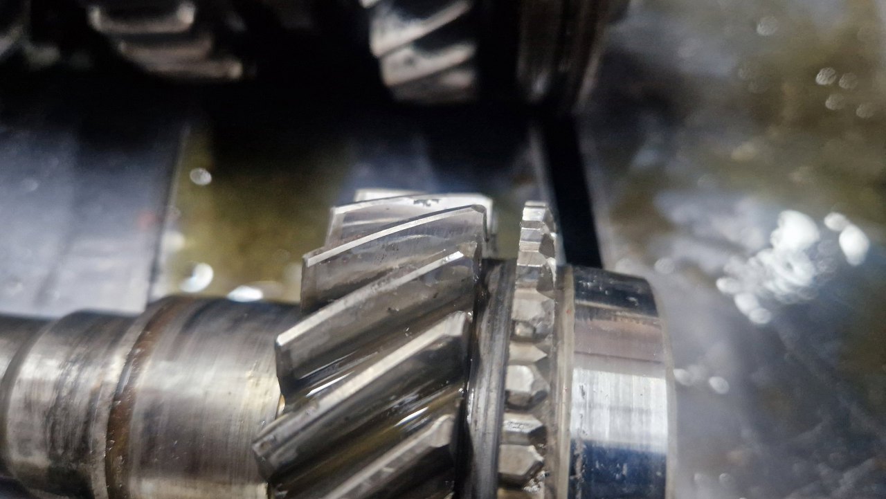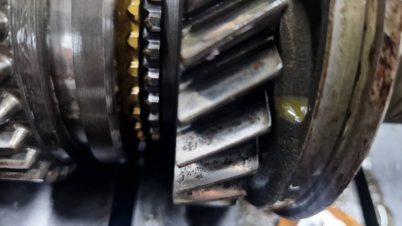 Zęby poszczególnych biegów i na choince i na wałku wyjściowym niestety mają mocne wżery od korozji - to te małe otworki. Czyli w zasadzie nie bardzo jest z czego tą skrzynię odbudowywać.