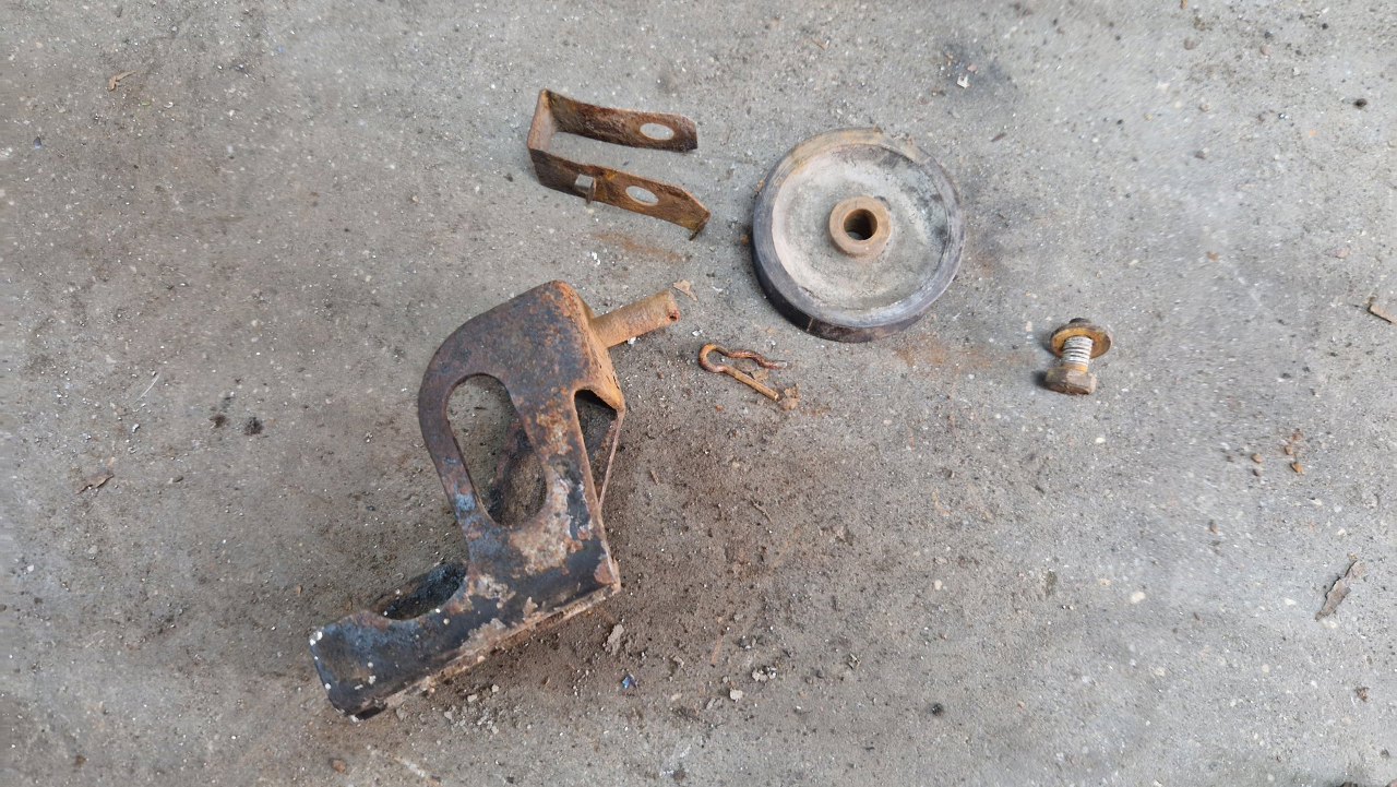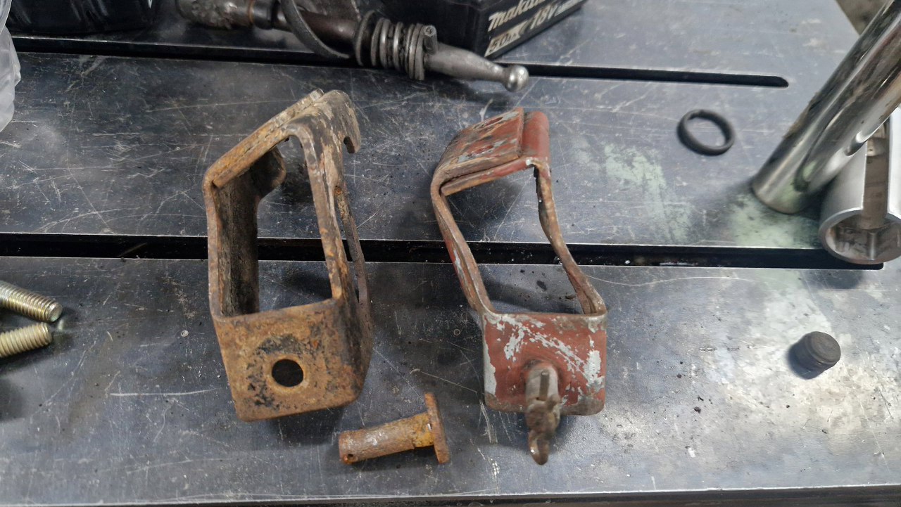 Szykuję teraz części do malowania proszkowego. Mocowanie rolki linki jedno było pogięte, a oba miały pordzewiałe ośki rolki.