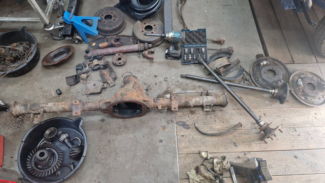 Dostałem jeszcze do zrobienia tylny most i zawieszenie. Resory wywaliłem na złom, bo były już tak złachane, że prościej i taniej było kupić nowe. Zostaje zatem most. Zobaczmy, co z nim...