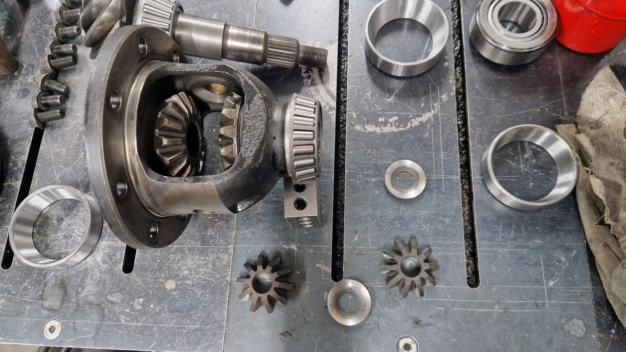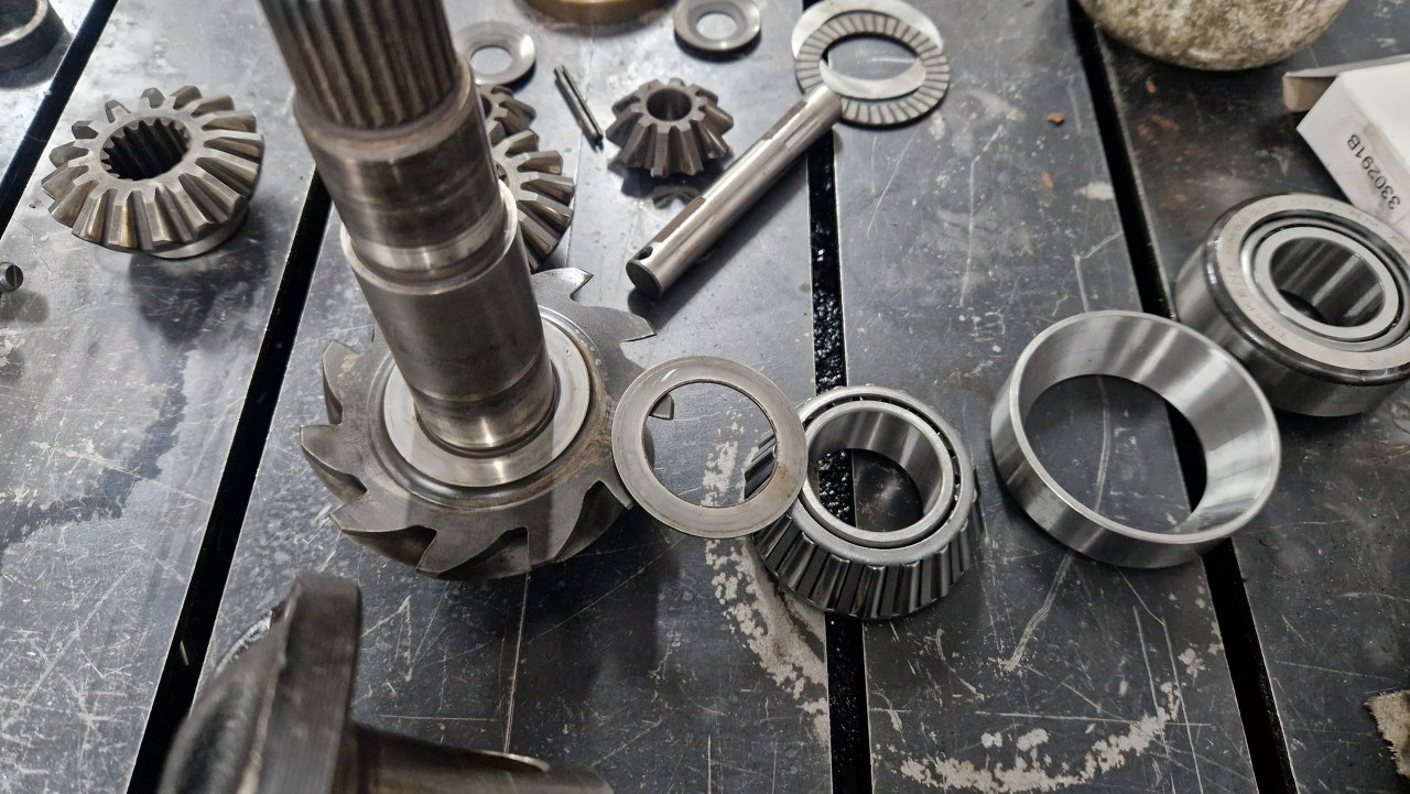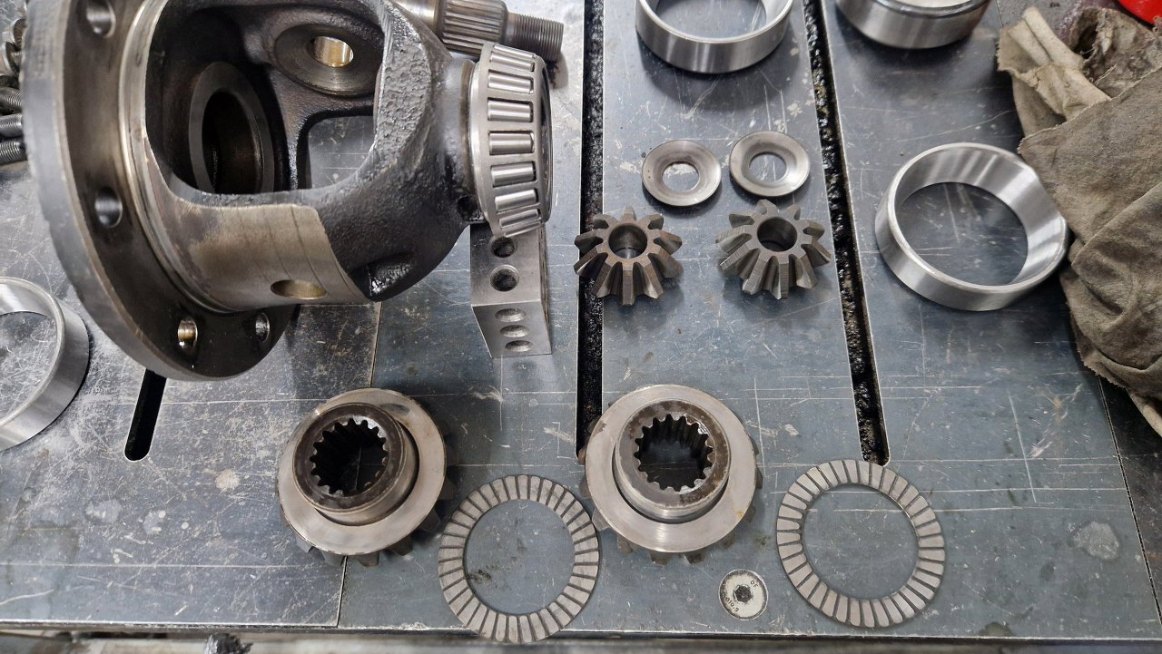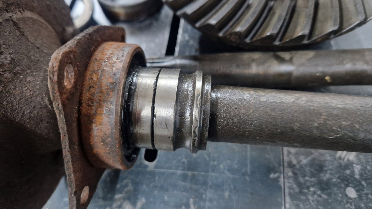 Bieżnie łożysk mechanizmu różnicowego są wytarte, a niektóre mają wżery po tym, jak do nich przyrdzewiały rolki.