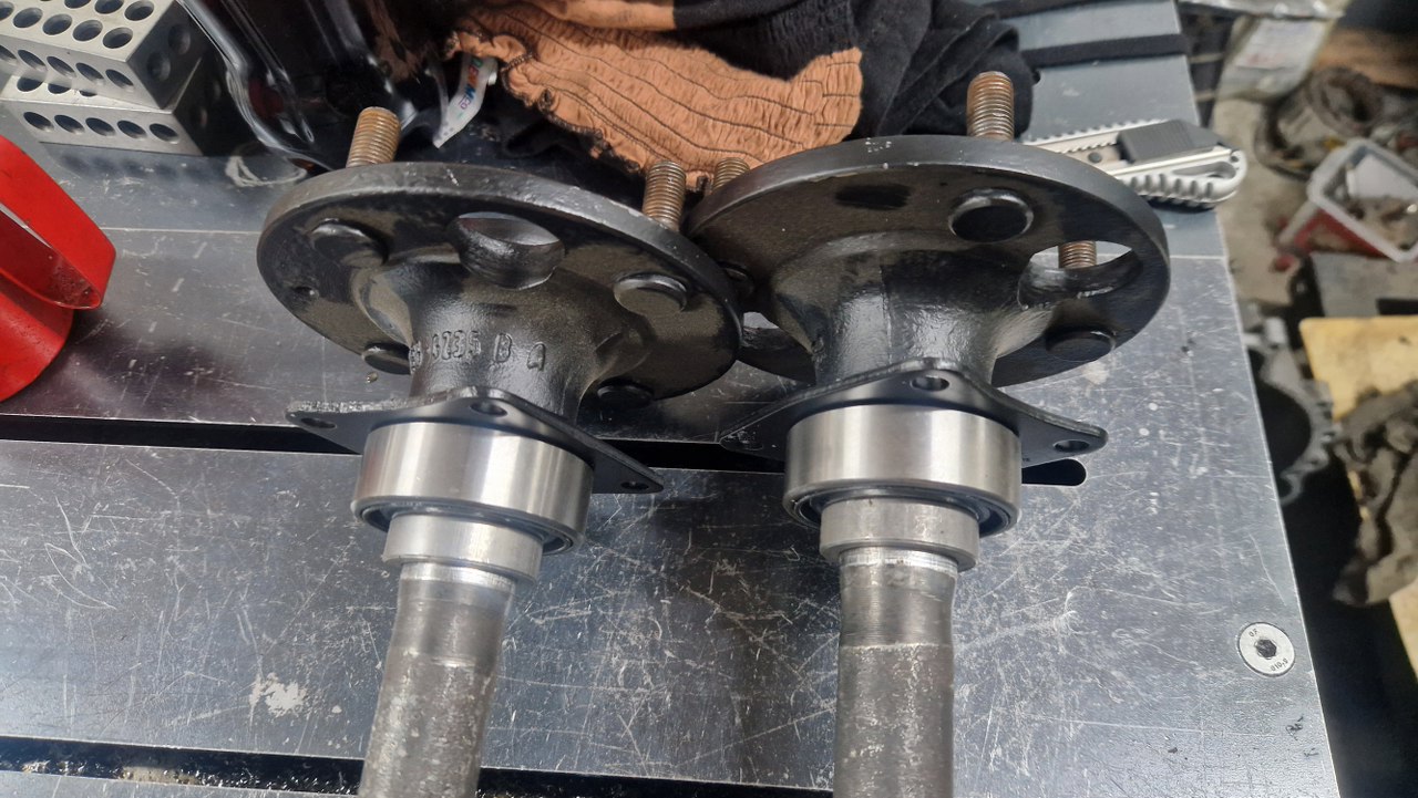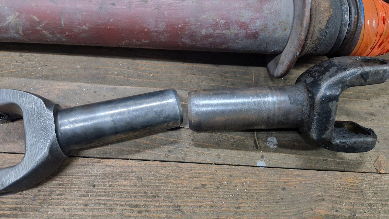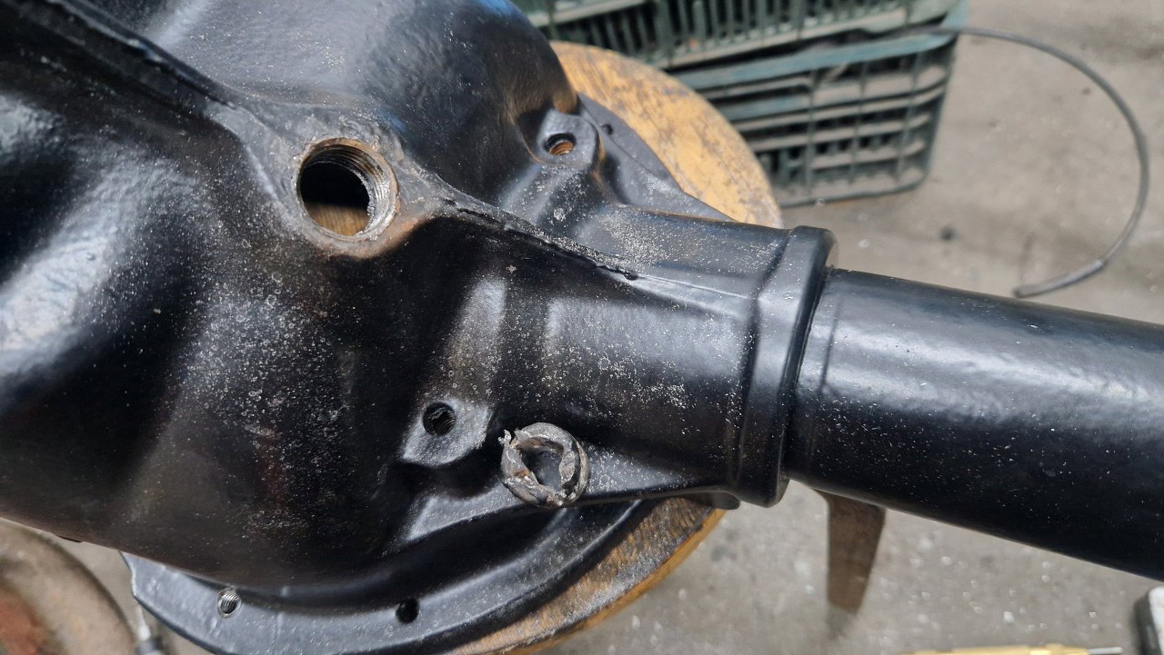 Tylny krzyżak był wymieniony na większy, co wymusiło wspawanie uszu i do wału i na flanszę przykręcaną do mostu. Oryginalna flansza widoczna jest u dołu.