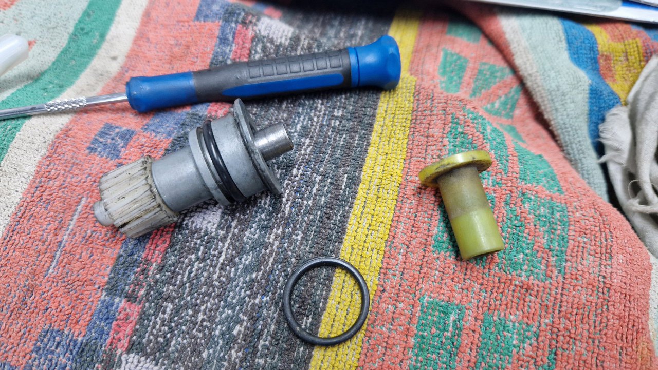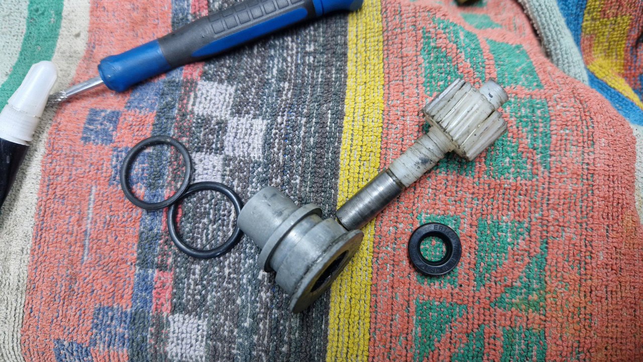 Dostałem uszczelniacz napędu prędkościomierza - to ten mały po prawej. Dobrałem do tego oring.