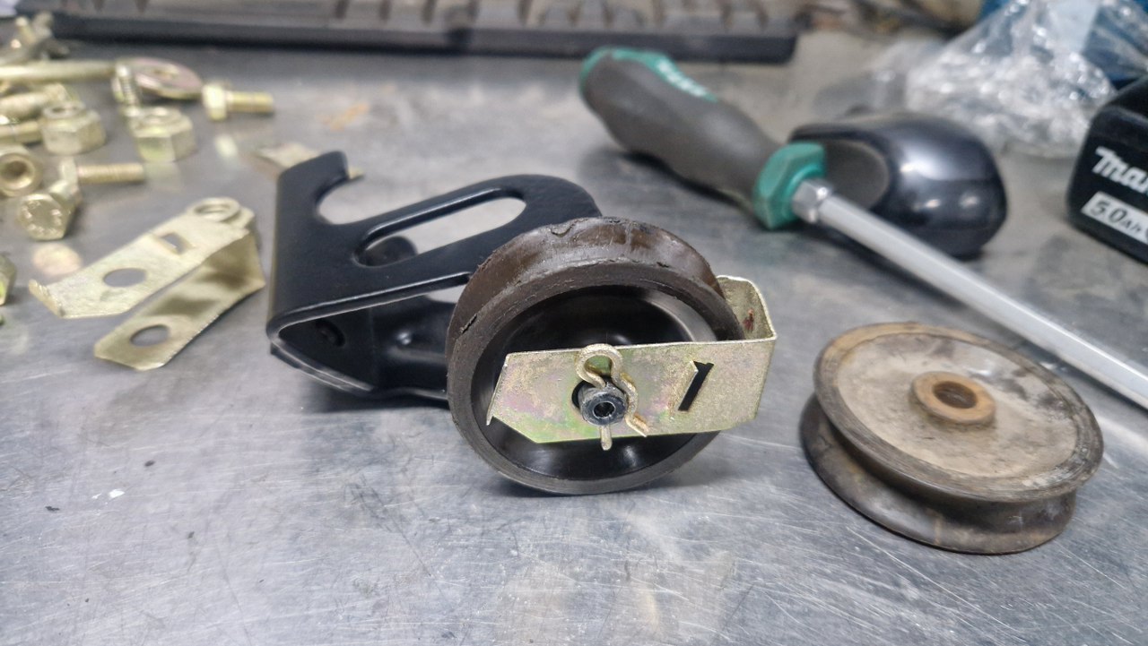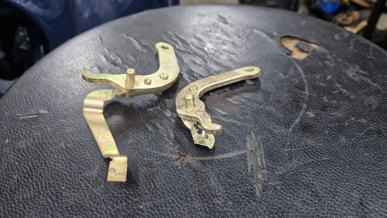 Przygotuję też części mocujące linkę hamulca ręcznego. To jest ta rolka, do której ośkę obrotu dotaczałem i wspawałem.