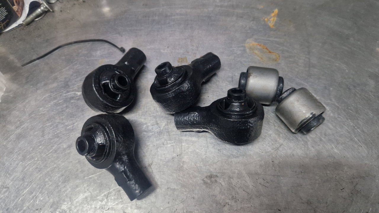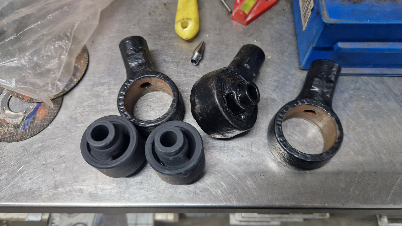 Wymienię też gumy końcówek stabilizatora. Oddałem do malowania dwa komplety, żeby wybrać ten, który lepiej wyjdzie.
