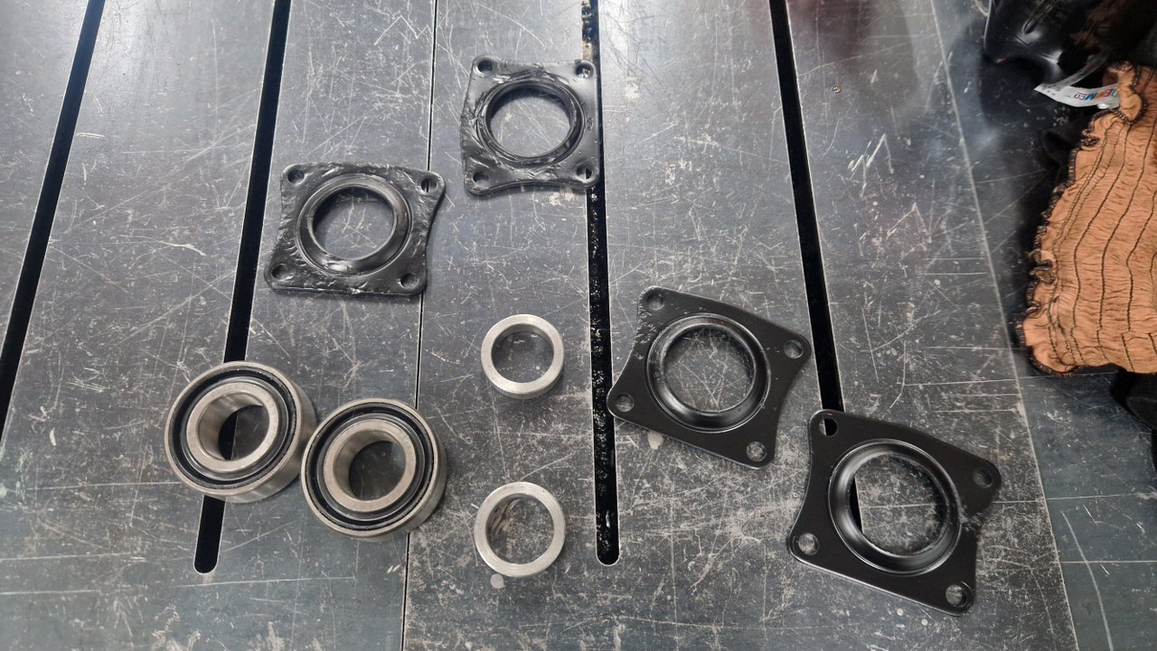 Blachy trzymające półosie w obudowie mostu też były mocno przechodzone - to te po lewej u góry - ktoś je musiał kiedyś młotkiem naparzać. Tu też włąściciel pozyskał i podesłał drugi zestaw.
