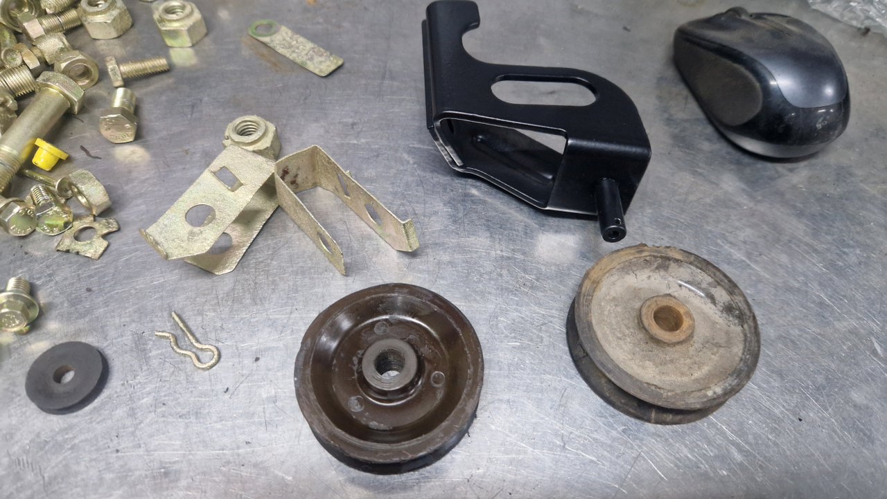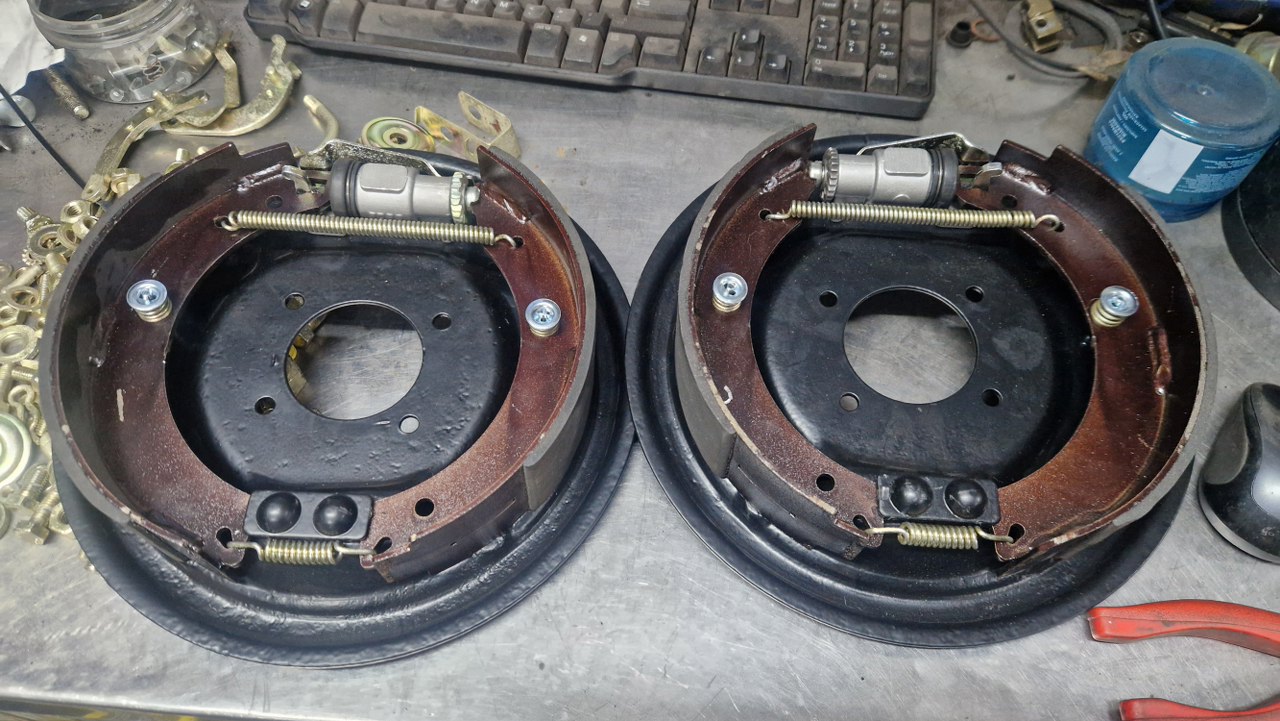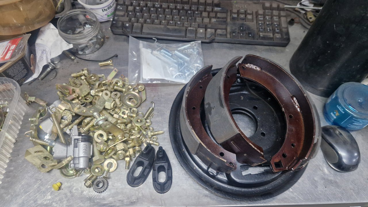 Pora poskładać hamulce. Po lewej wysypałem wszystkie śrubki, które odnowiłem do tego mostu.
