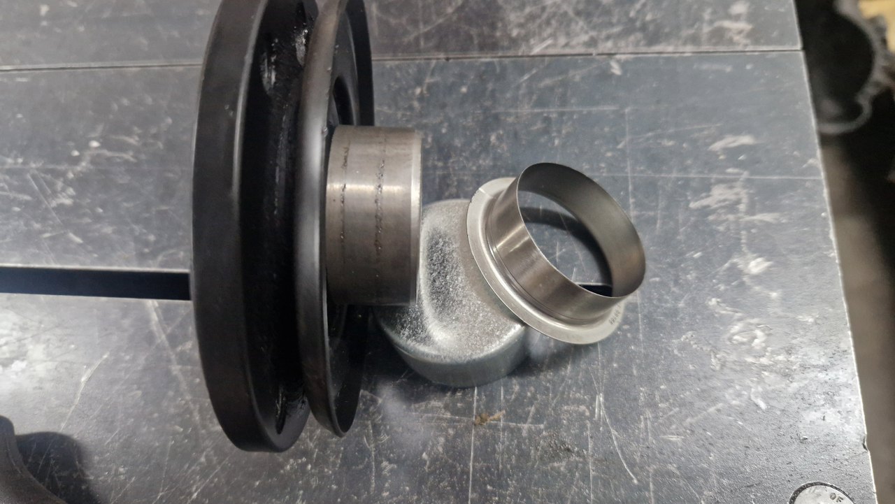 Flansza mostu ma spore wżery w miejscu uszczelniacza. To by ciekło, więc zamontuję tu tulejkę naprawczą.