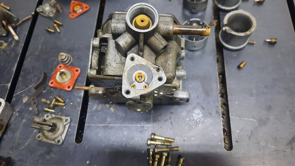 Warto zmierzyć ile wystaje szpilka regulacyjna ssania, żeby ustawić ją tak samo po złożeniu.