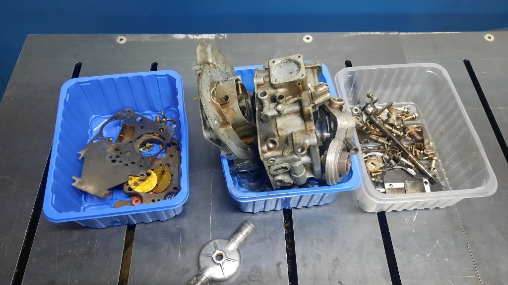 Kolejny, znienacka zlecony gaźnik. Znowu Pierburg Solex EEIT z Forda, tym razem wersja 32/32 z Taunusa 2.0 V6. Gaźnik podobno został oddany do regeneracji do innego fachowca, który to się nie podjął, jako powód podając powód, że gaźnik jest w tak złym stanie, że nie ma co z niego zrobić. Z tym twierdzeniem będę polemizował, bo, mimo, że z zewnątrz gaźnik wygląda standardowo jak złom, to ostatecznie okazał się być w świetnym stanie. Rzućmy okiem jak wyglądał po dostarczeniu go do mnie:
