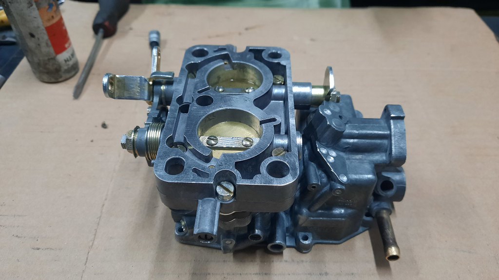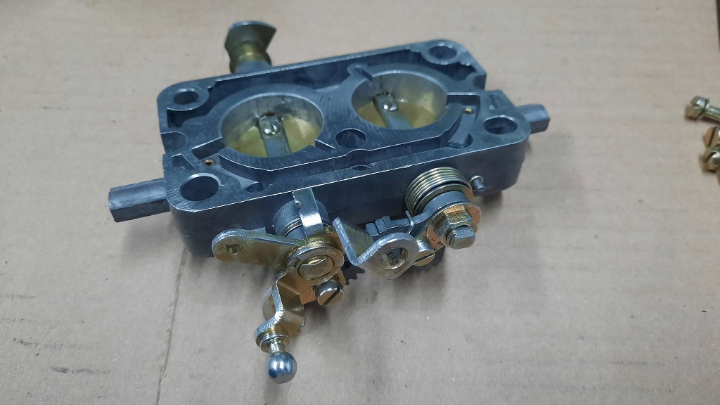 Potem zacząłem składać gaźnik od płytki z pzrepustnicami. Zawsze najtrudniej jest się zorientować z kolejności tyczh wszystkich części.