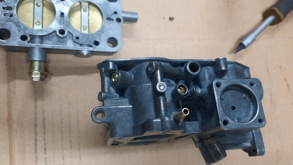 Kolejnym krokiem jest przygotowanie korpusu gaźnika i zamontowanie w nim zwężek.