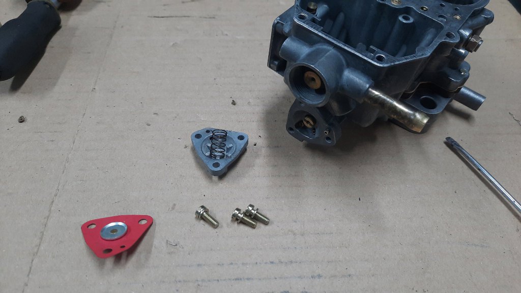 Przygotowałem też wszystkie uszczelki przekładki gaźnika. Zaraz przykręcę płytkę przepustnic.