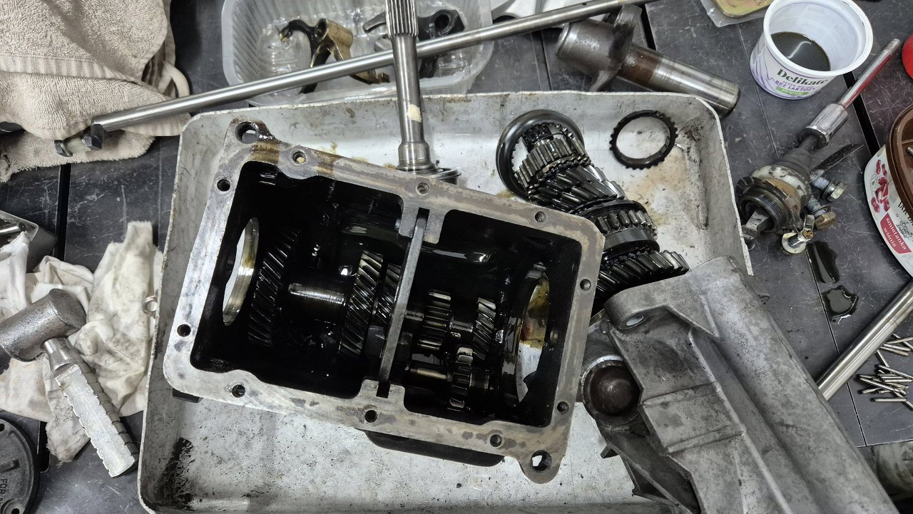Zazwyczaj oczywiście uszczelnienie skrzyni wymaga jej rozłożenia, żeby się dostać do wszystkich uszczelek i uszczelniaczy. Poza tym, skrzynię z 1973 roku i tak warto porządnie umyć w środku.