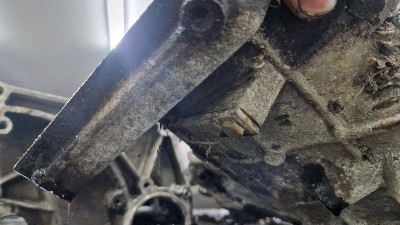 To jest wyjście ze skrzyni. Dokładnie w takim stanie był oring, dodatkowo jest tu sporo silikonu. Chyba tu ktoś już był przede mną.
