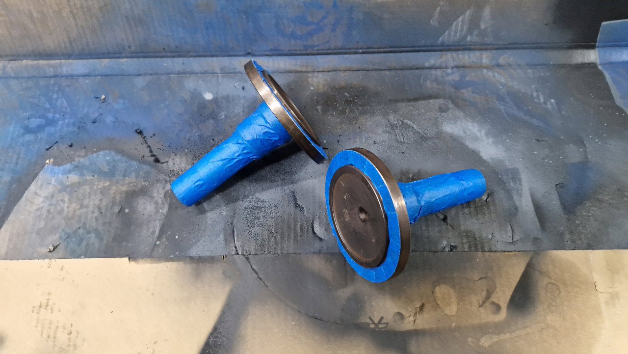 Półośki po myciu okleiłem do pomalowania. Niech nie rdzewieją tam, gdzie wystają na zewnątrz.