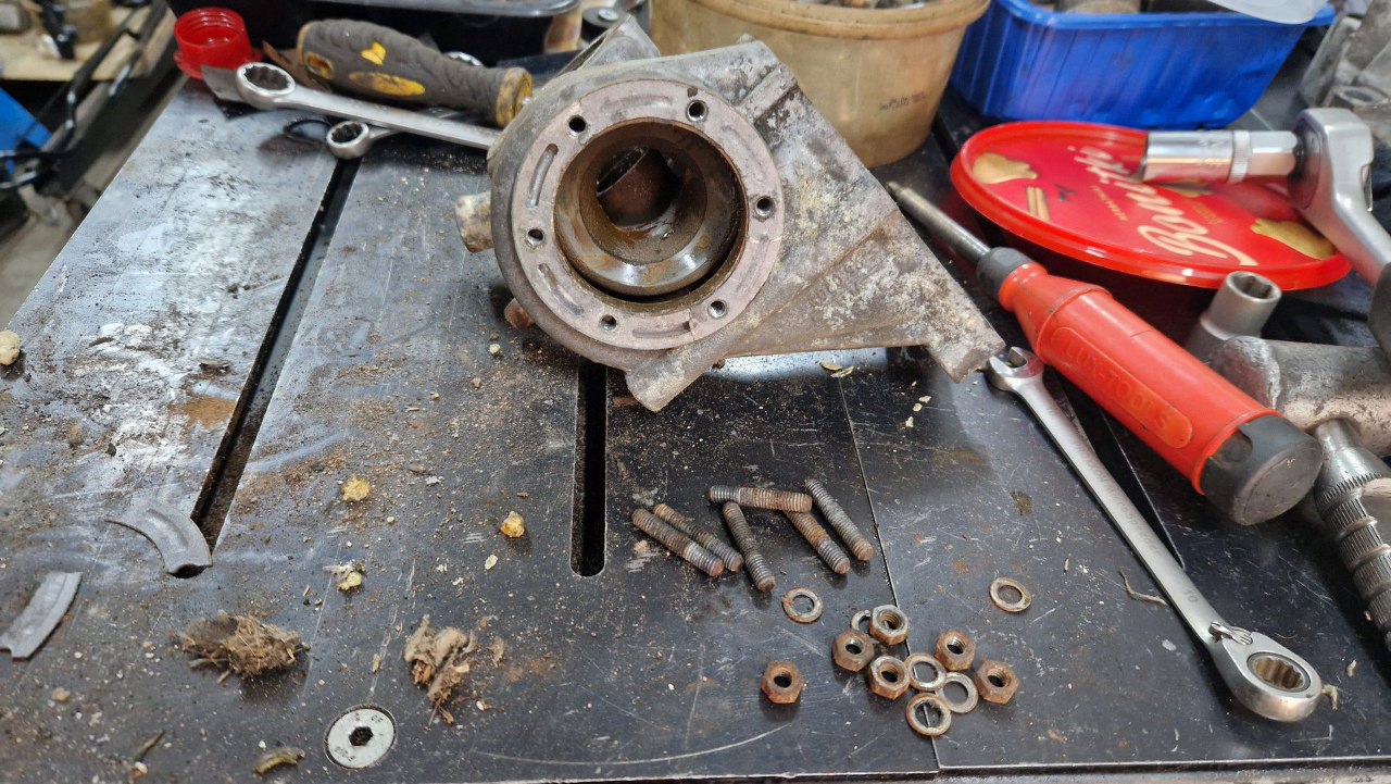 Wszystko to odkręcam i od razu wrzucam do skrzyni z częściami do piaskowania. Śrubki oczywiście będą odrdzewione i ocynkowane.