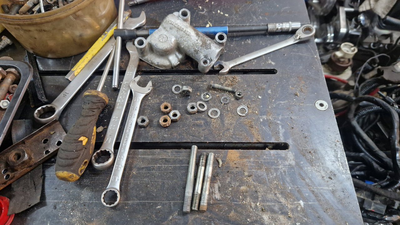 Odkręciłem też i pompę wody i wszystkie szpilki z magistrali wodnej.