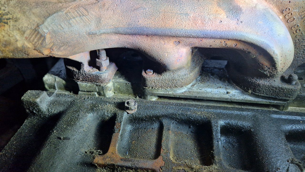 Zdjąłem kolektor. Śruba w bloku to korek kanałów wodnych, ale raczej już nieoryginalny.