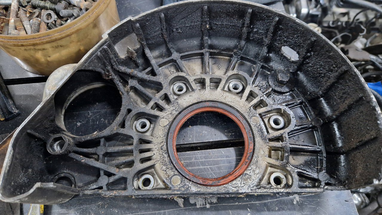 Z tyłu ta zdemontowana część uszczelnia blok z miską oleju.