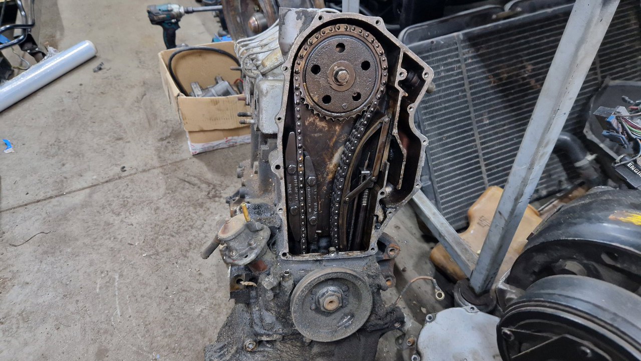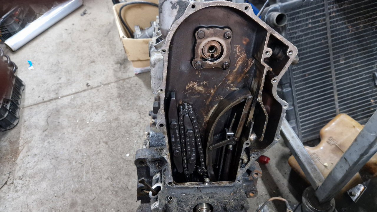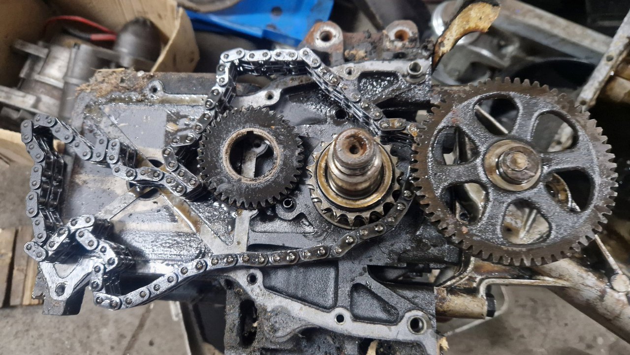Chcę teraz zdjąć głowicę, muszę więc odczepić wałek rozrządu. Z przodu jest koło zębate napędzane łańcuchem.