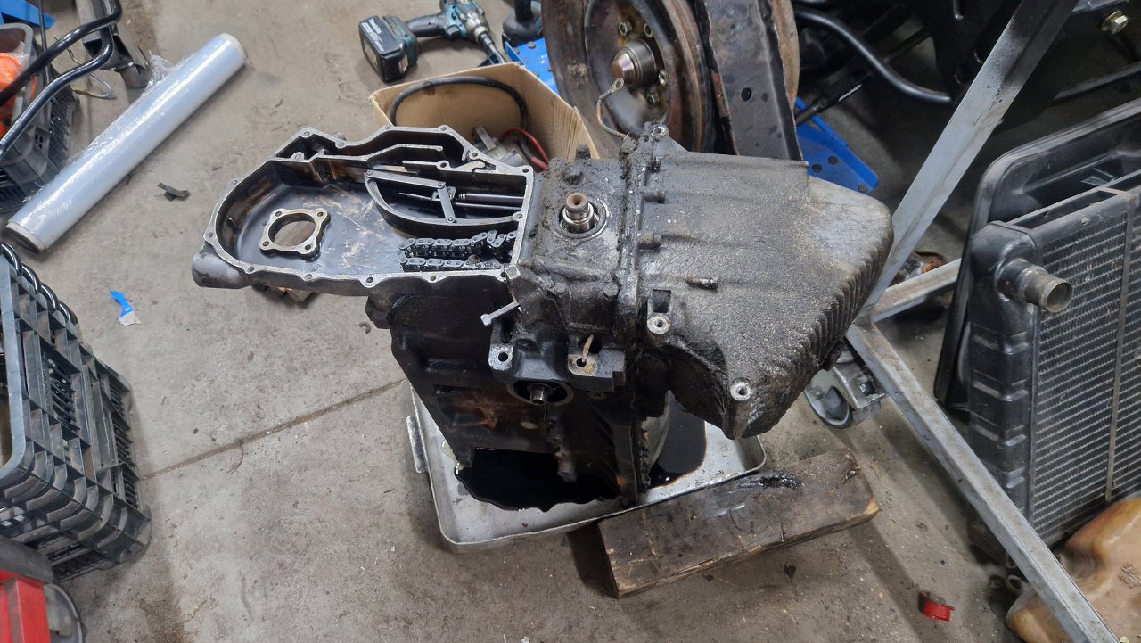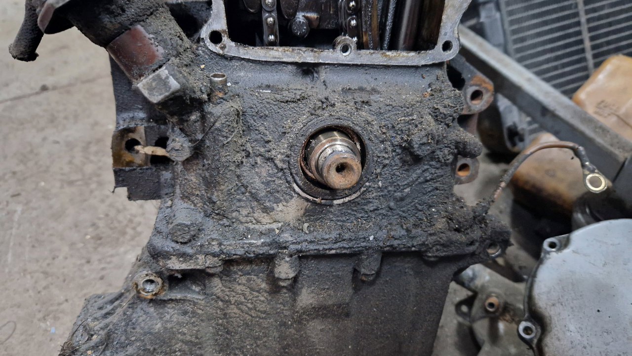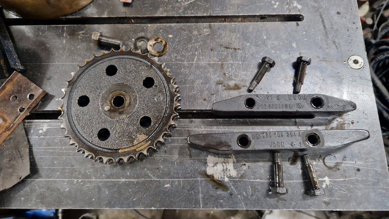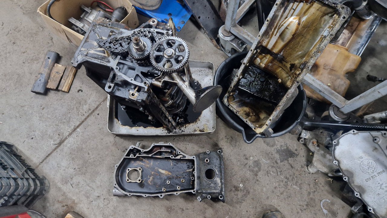 Z wału zsunąłem kółko napędzające pompę oleju. Koło łańcucha nie chce tak łatwo zejść.