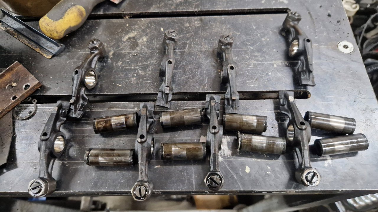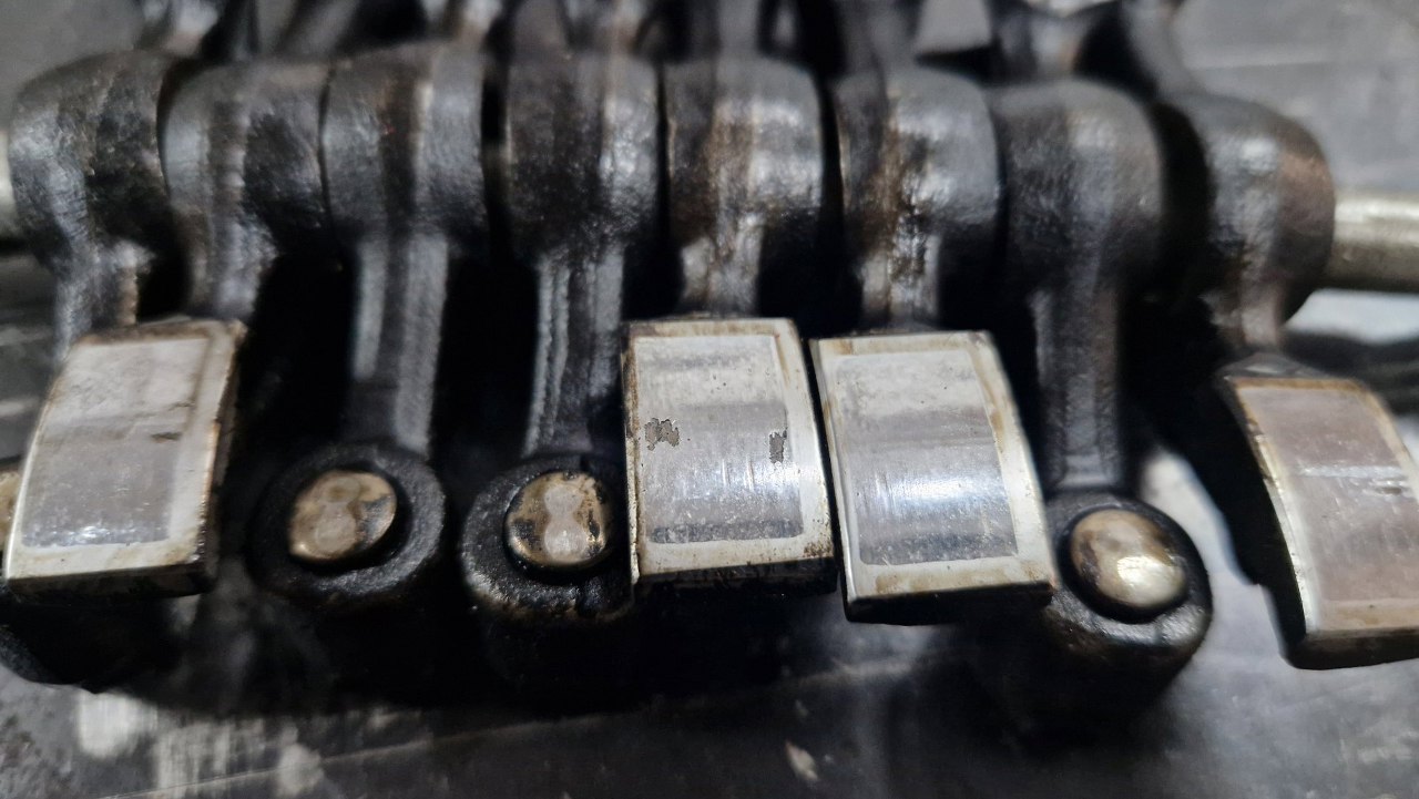 Potem można wysunąć ośki dźwigienek z głowicy.