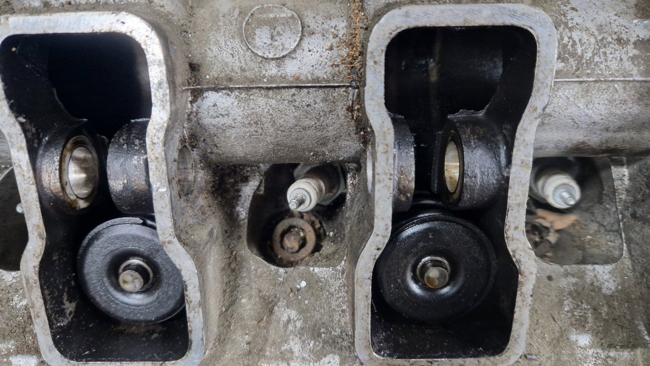 Potem odkleiłem głowicę z uszczelek i zdjąłem ją z bloku. W środku trochę nagaru, ale chyba nie jest źle.