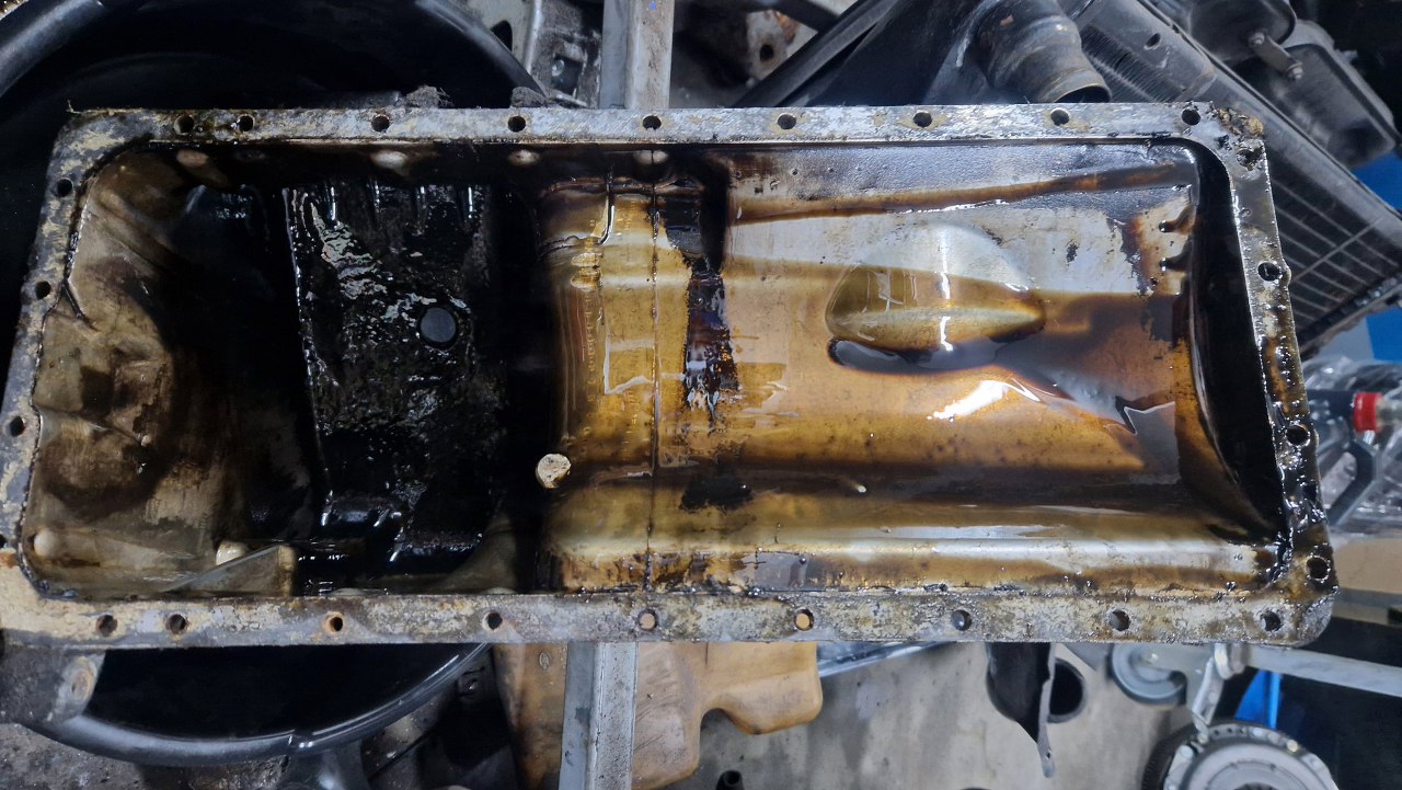 I dobrze, że w misce, bo, mimo, że niby pusty, to podczas odkręcania śrub miski trochę oleju z niego wyleciało.