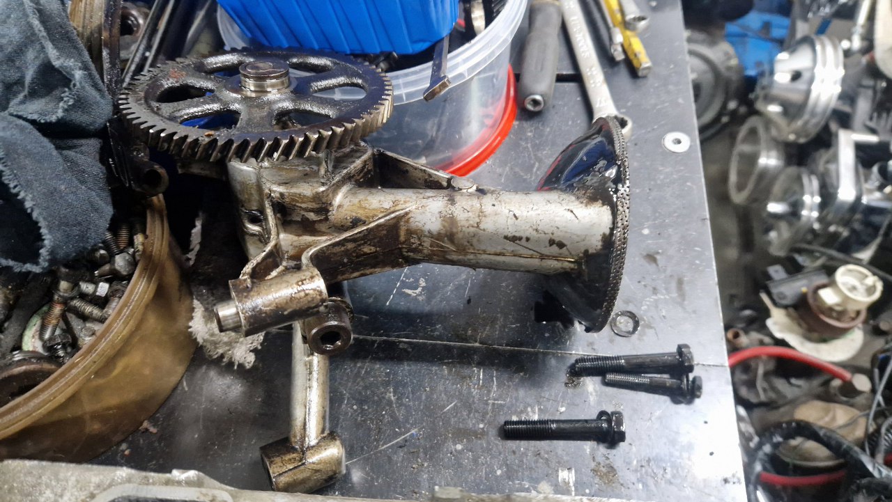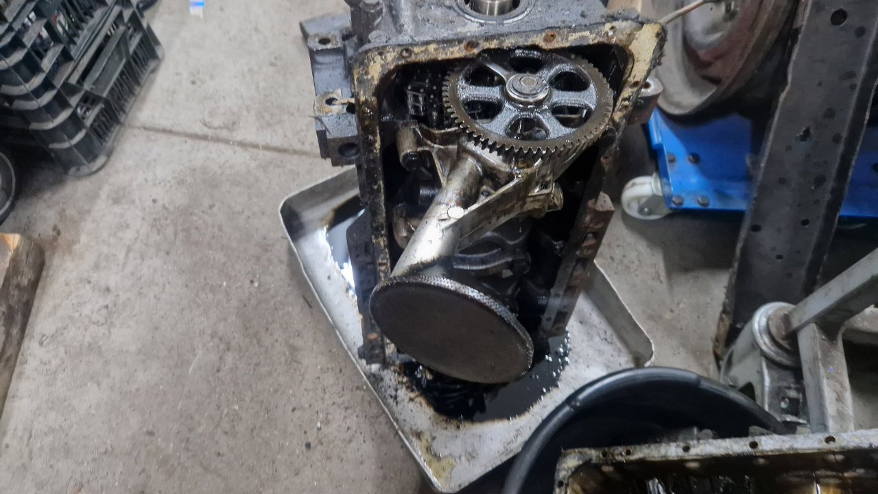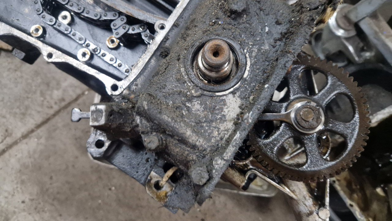 Po zdjęciu miski rzuca się w oczy dość spora pompa oleju.