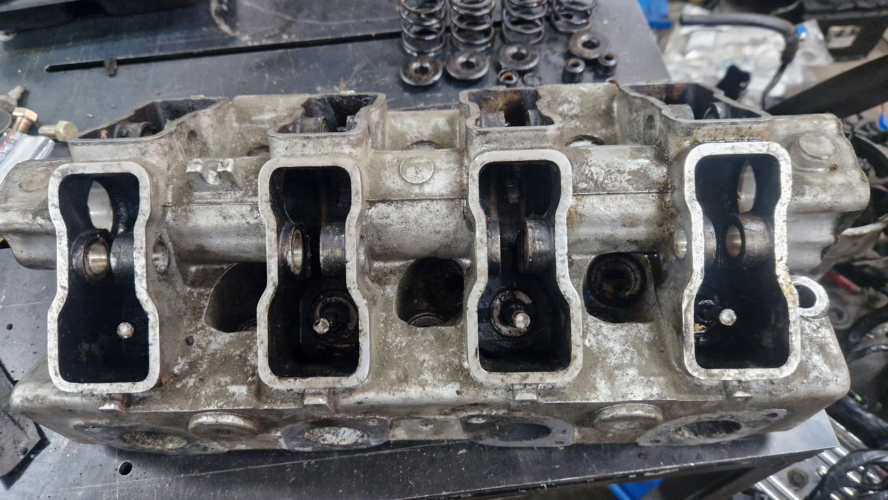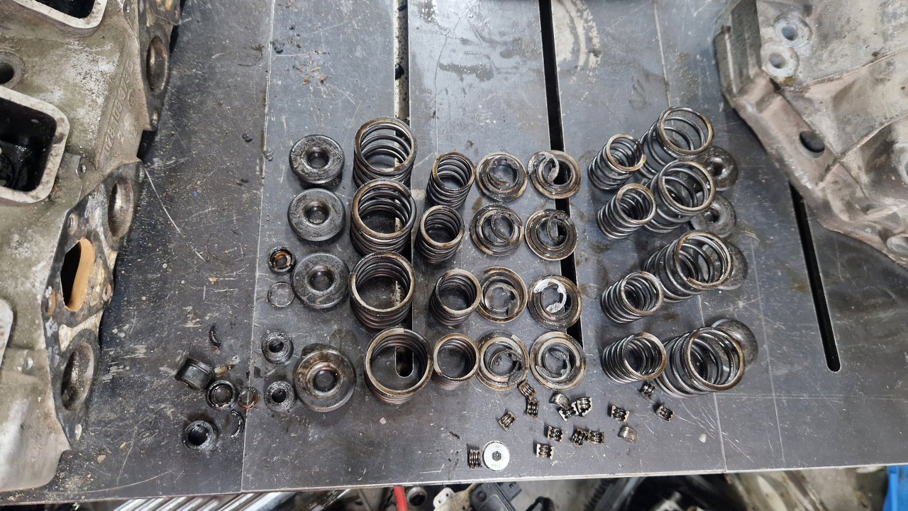 Śrubki wrzucone do mycia, części aluminiowe wysłane do szkiełkowania, trzeba wreszcie zobaczyć, co jest w środku silnika. Zacznę od przygotowania głowicy do szlifierni. Rozpiąłem zawory i wyciągnąłem sprężyny.