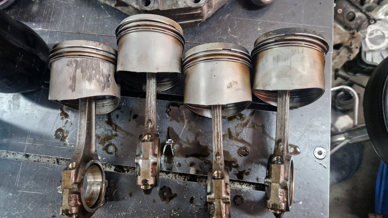 Potem wyjąłem tłoki. Już wiem, co się działo na pierwszym cylindrze. Tłok jest zatarty. Co jest w sumie problemem, bo sam K70 jest dość rzadkim samochodem, a silnik 1,8 jest jeszcze rzadszy, bo występował tylko przy końcu produkcji.