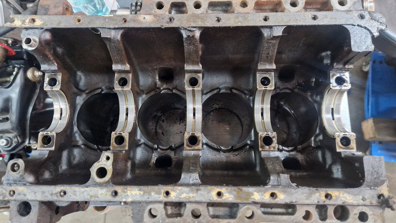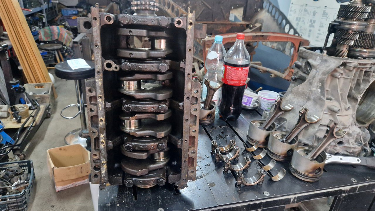 Blok wstawiłem na stoł. Pora na wyjęcie tłoków. Korbowody wyglądają mi na kute.