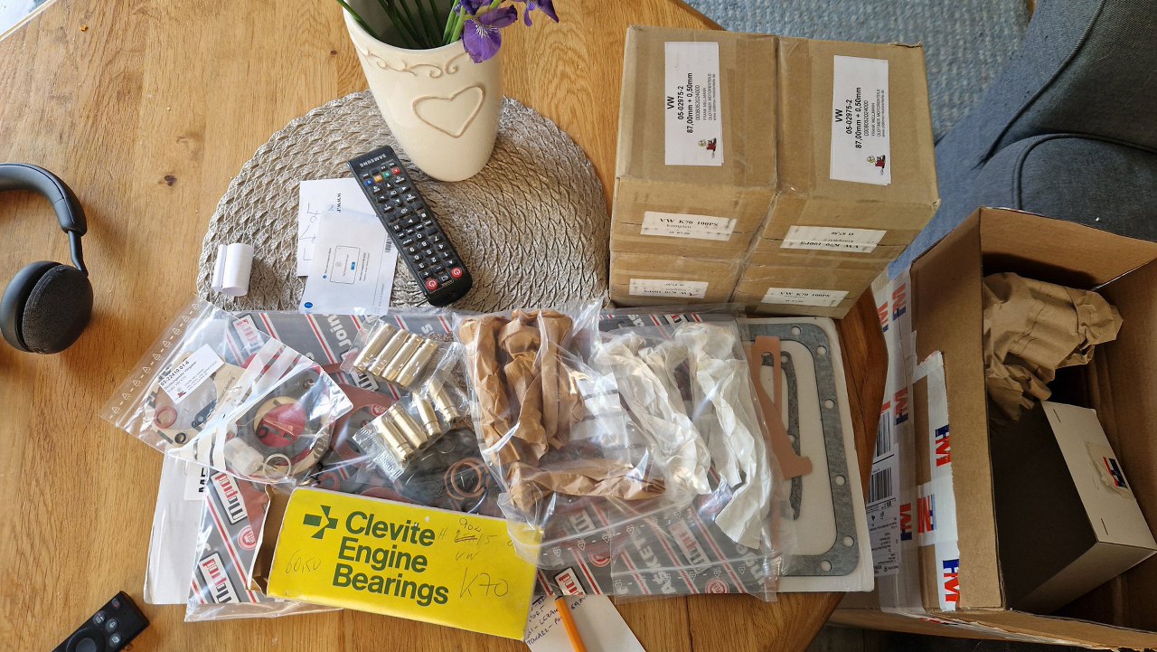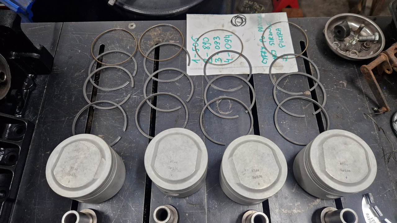 Wbrew temu, co się spodziewałem, części do takiego egzotyka udało się znaleźć dość łatwo, ale w sumie dzięki wydatnej pomocy jednago z czytaczy strony, któy podrzucił lika do dobrego sklepu w Niemczech. Dzięki Jędrek!. Kupione zostały tłoki, panewki główne, uszczelki, zawory i prowadnice zaworowe. Ceny były nawet przyzwoite. Nie udało się kupić panewek korbowych.