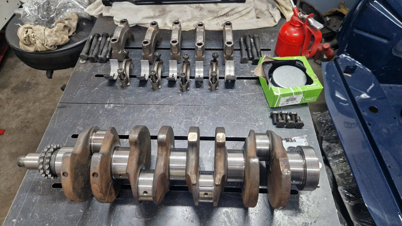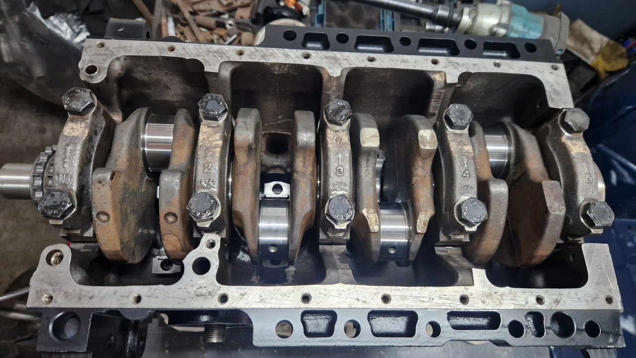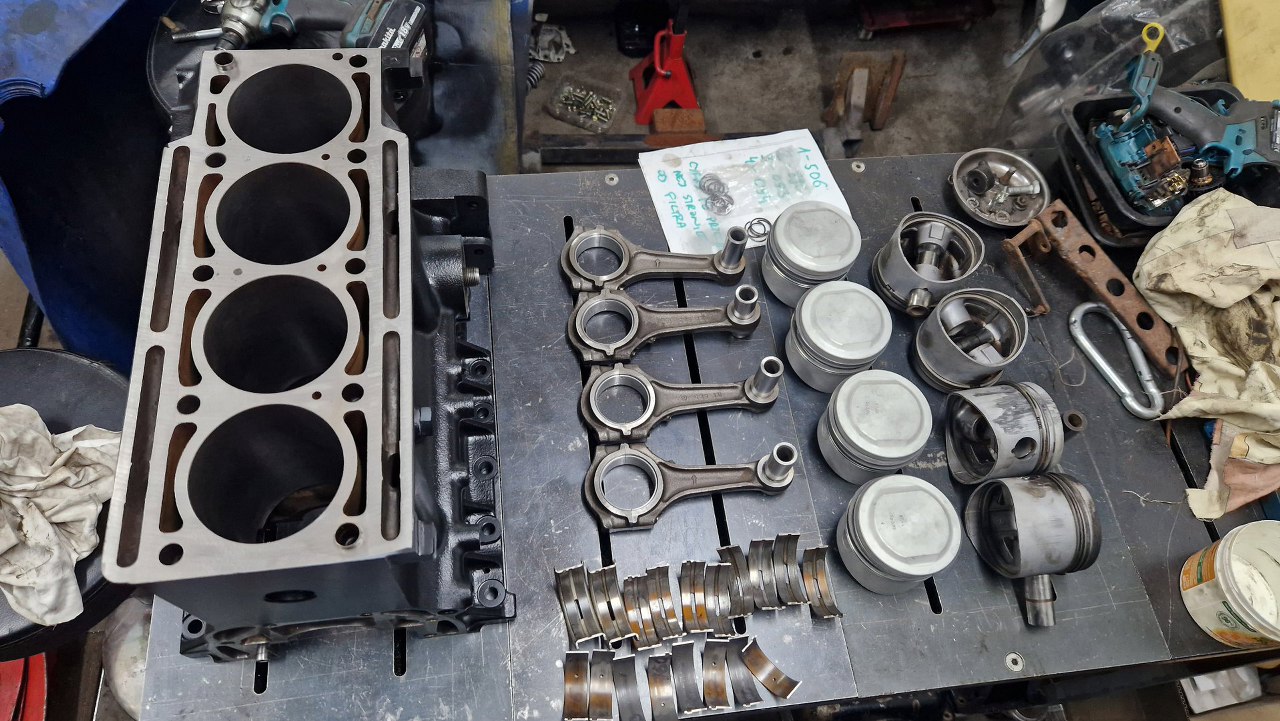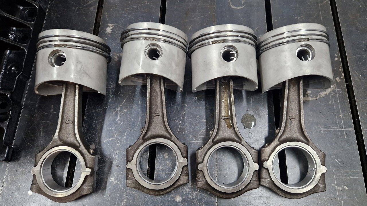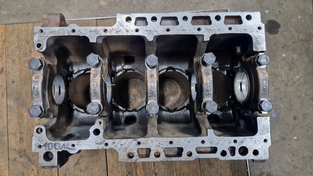Blok z częściami pojechał do szlifierni. Tu już po powrocie, po szlifie na nadwymiarowe tłoki. W szlifierni się oburzyli na brak panewek korbowych i skombinowali je sami :)