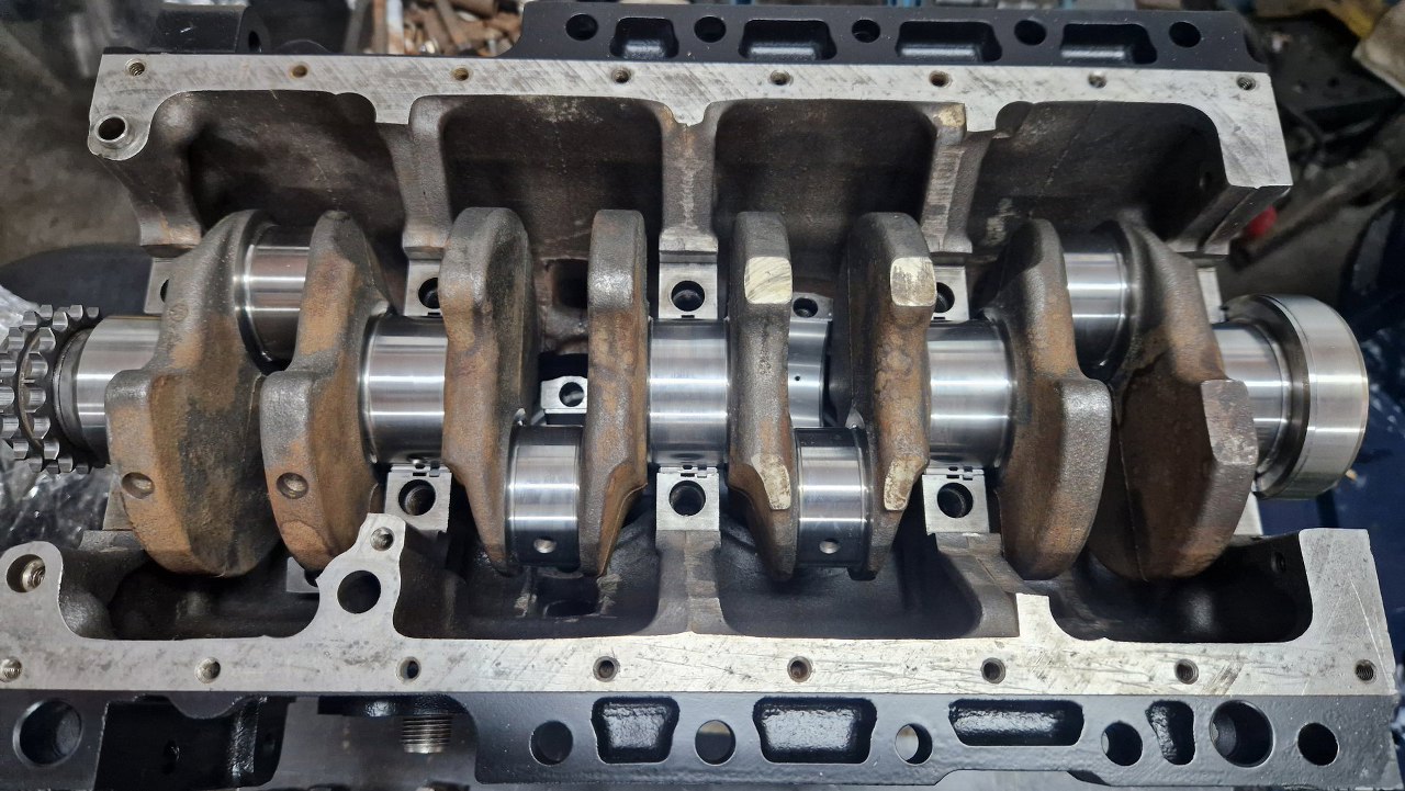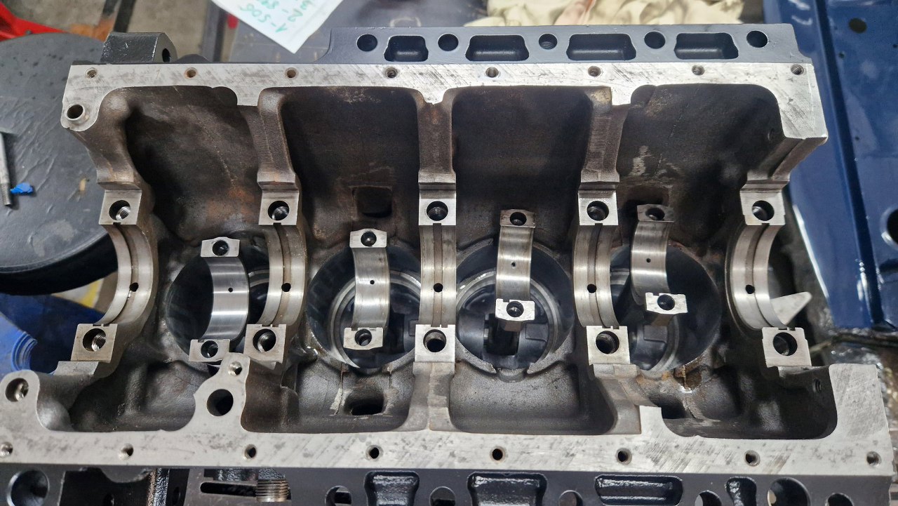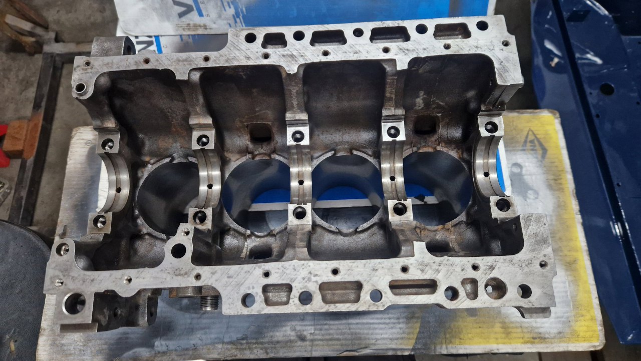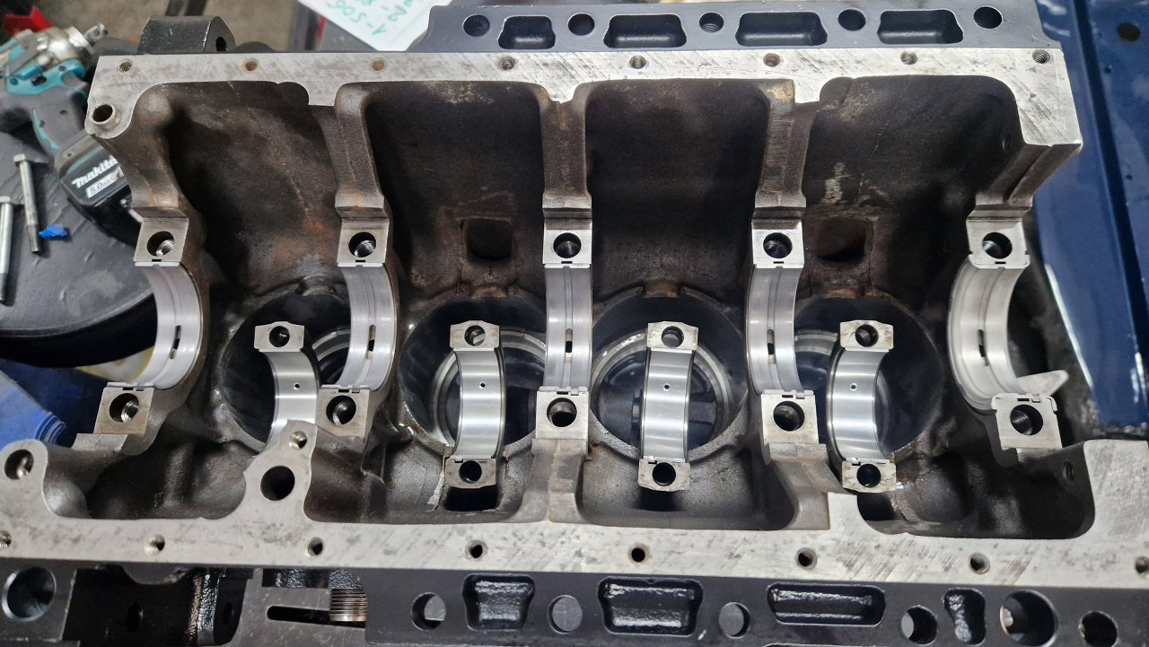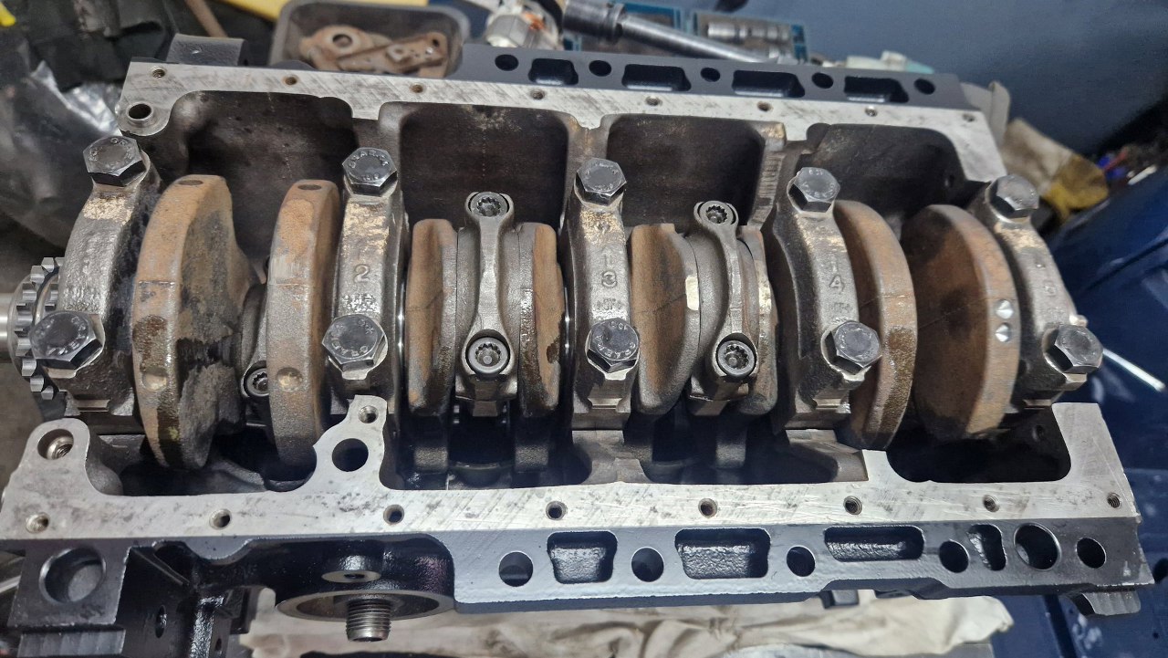 Blok z częściami pojechał do szlifierni. Tu już po powrocie, po szlifie na nadwymiarowe tłoki. W szlifierni się oburzyli na brak panewek korbowych i skombinowali je sami :)