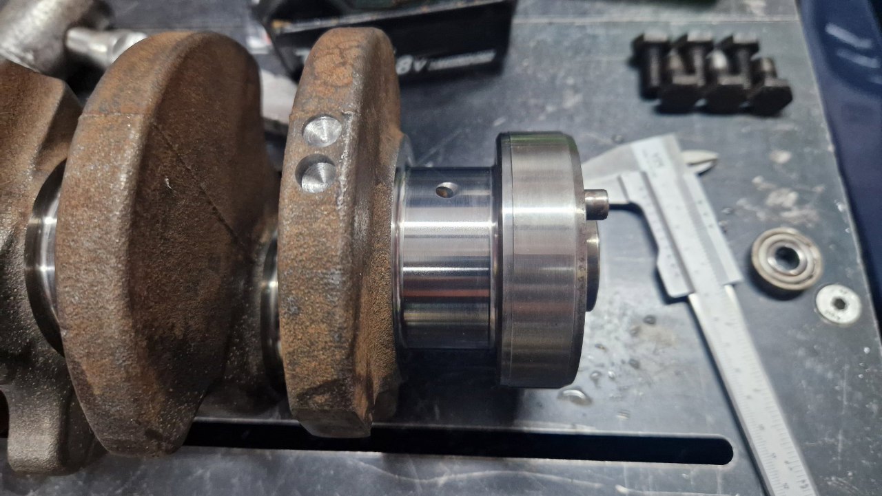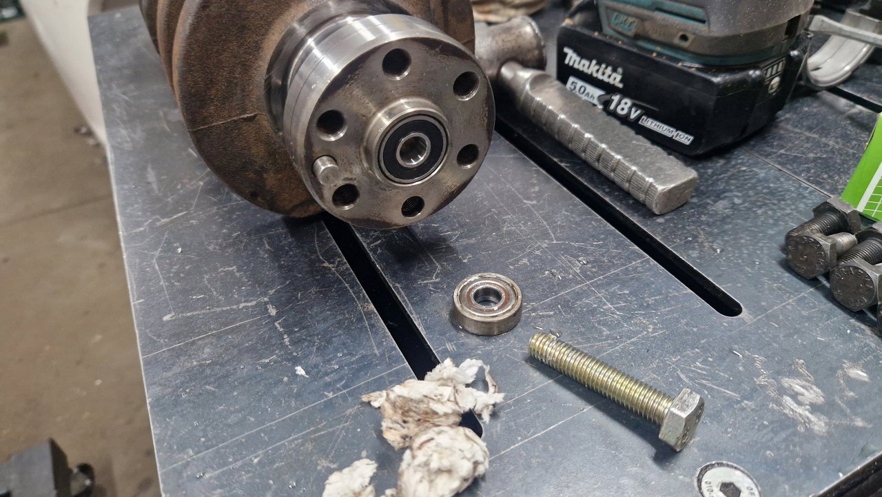 Gotowe. Powinno być szczelne. Przy okazji widać ślady wyważania wału korbowego.