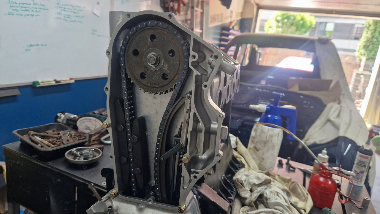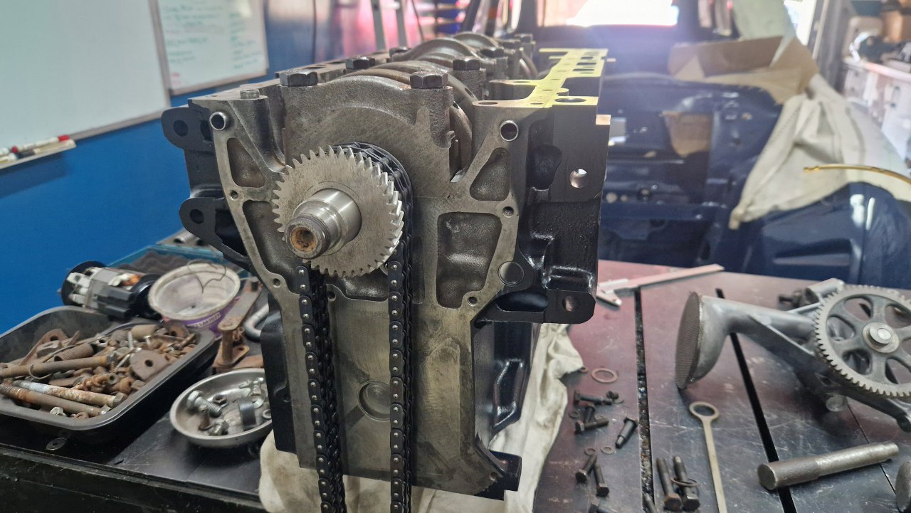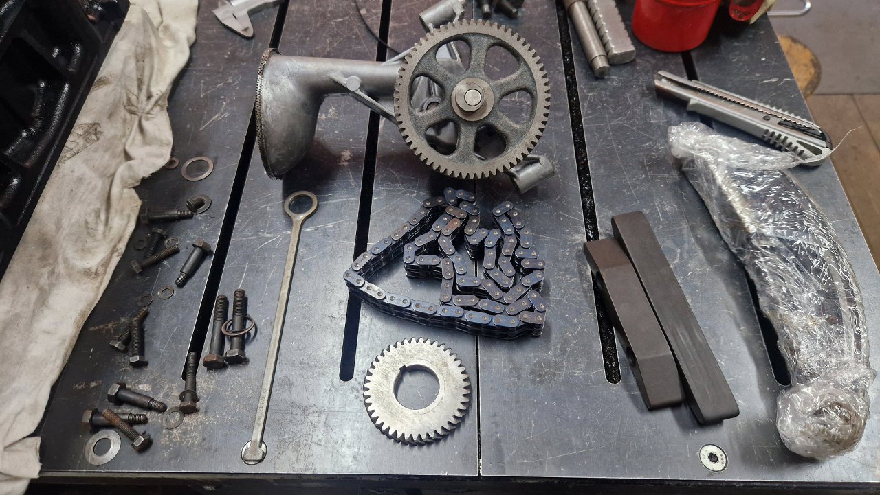 Założyłem łańcuch i kółko napędu pompy oleju.