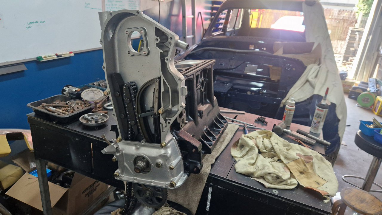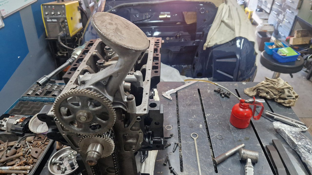 Ponieważ silnik na sztorc stoi dość niestabilnie, położyłem go na stole. Teraz będę zakrywał rozrząd pokrywą łańcucha.