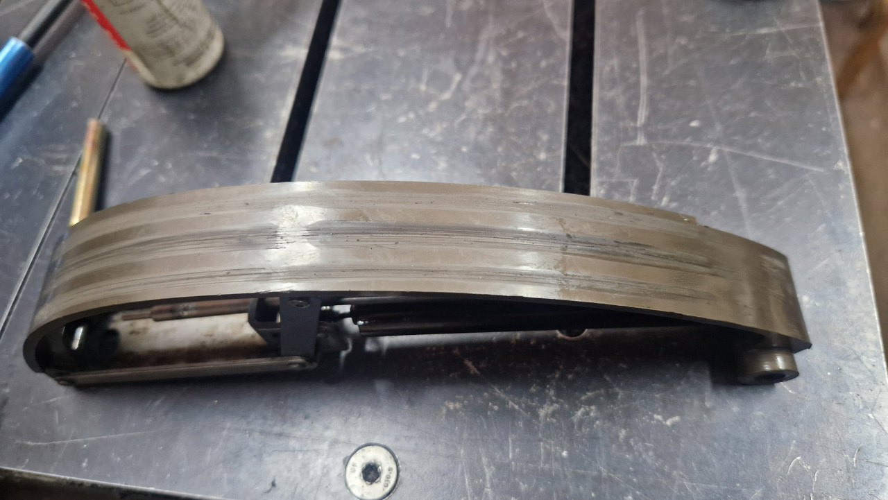 Wałek też jest w niezłym stanie i nie wymaga wymiany. Ma bardzo ciekawą konstrukcję smarowania - ma otwór w środku i ze środkowego czopa smarowanie jest rozprowadzone w środku wałka, a na krzywkach sa otworki, którymi wylewa się olej. Jeden z tych otworków widać na zdjęciu.